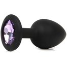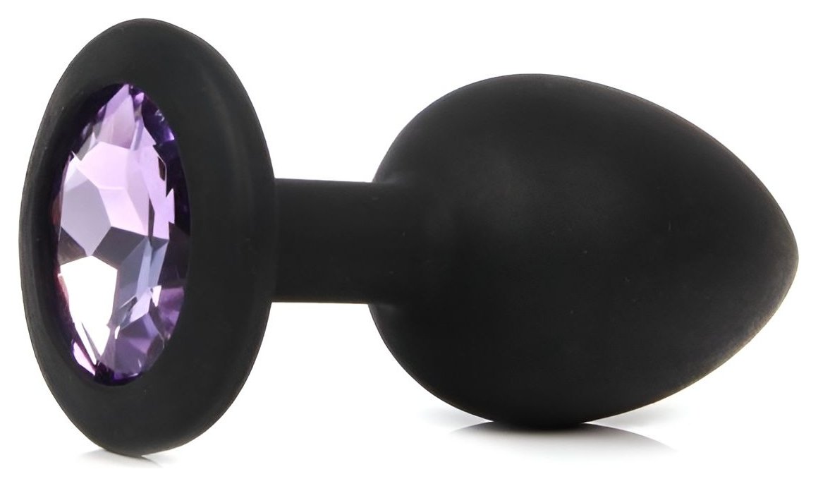 Черная анальная пробка с сиреневым кристаллом - 7,3 см