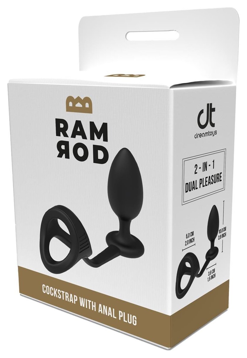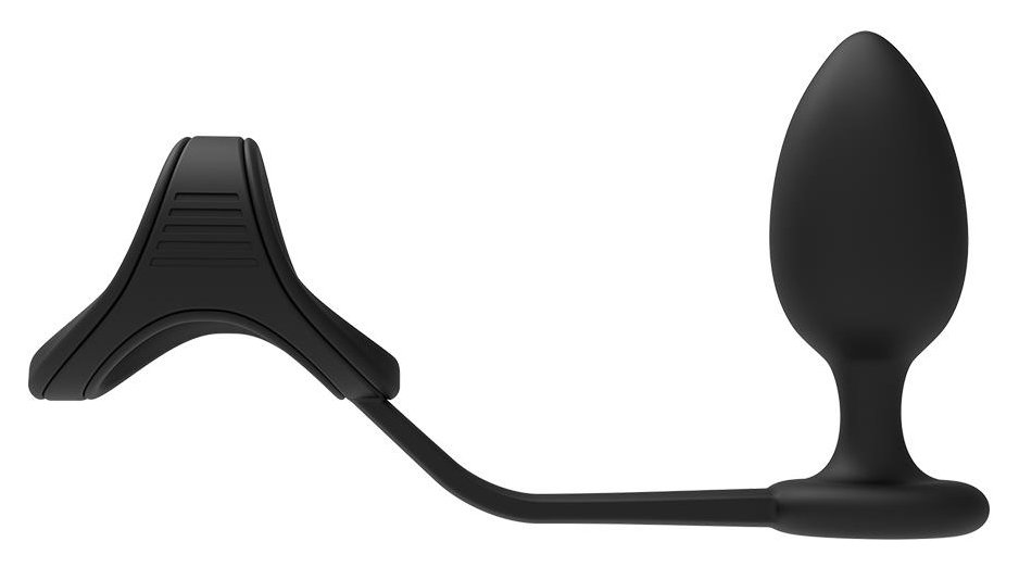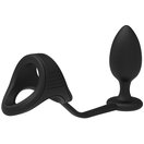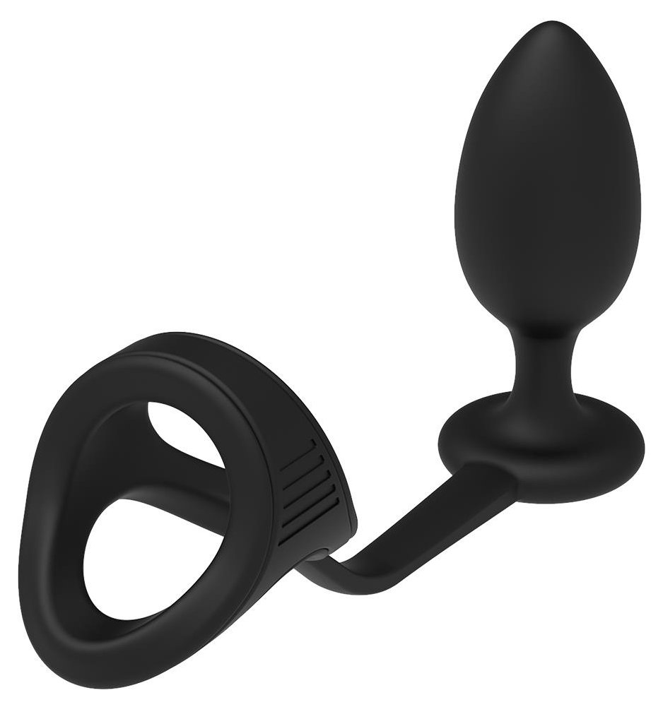 Черное эрекционное кольцо с анальной пробкой Cockstrap With Anal Plug