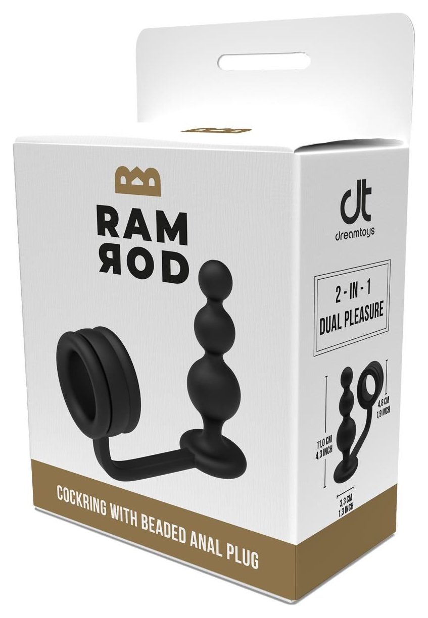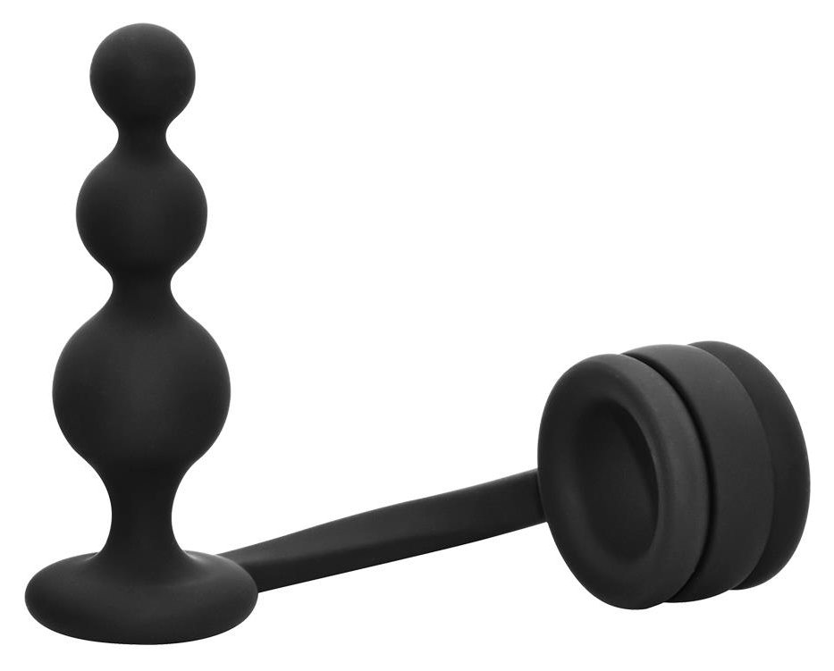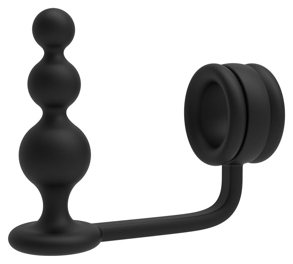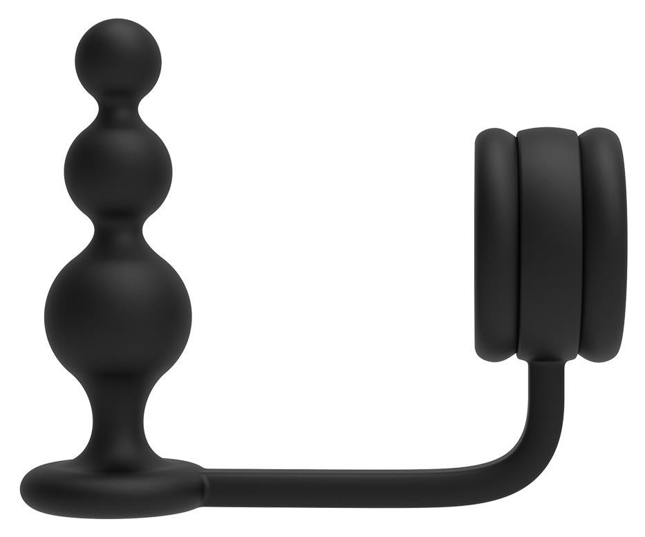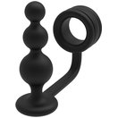 Черное эрекционное кольцо с анальной елочкой Cockring With Beaded Anal Plug