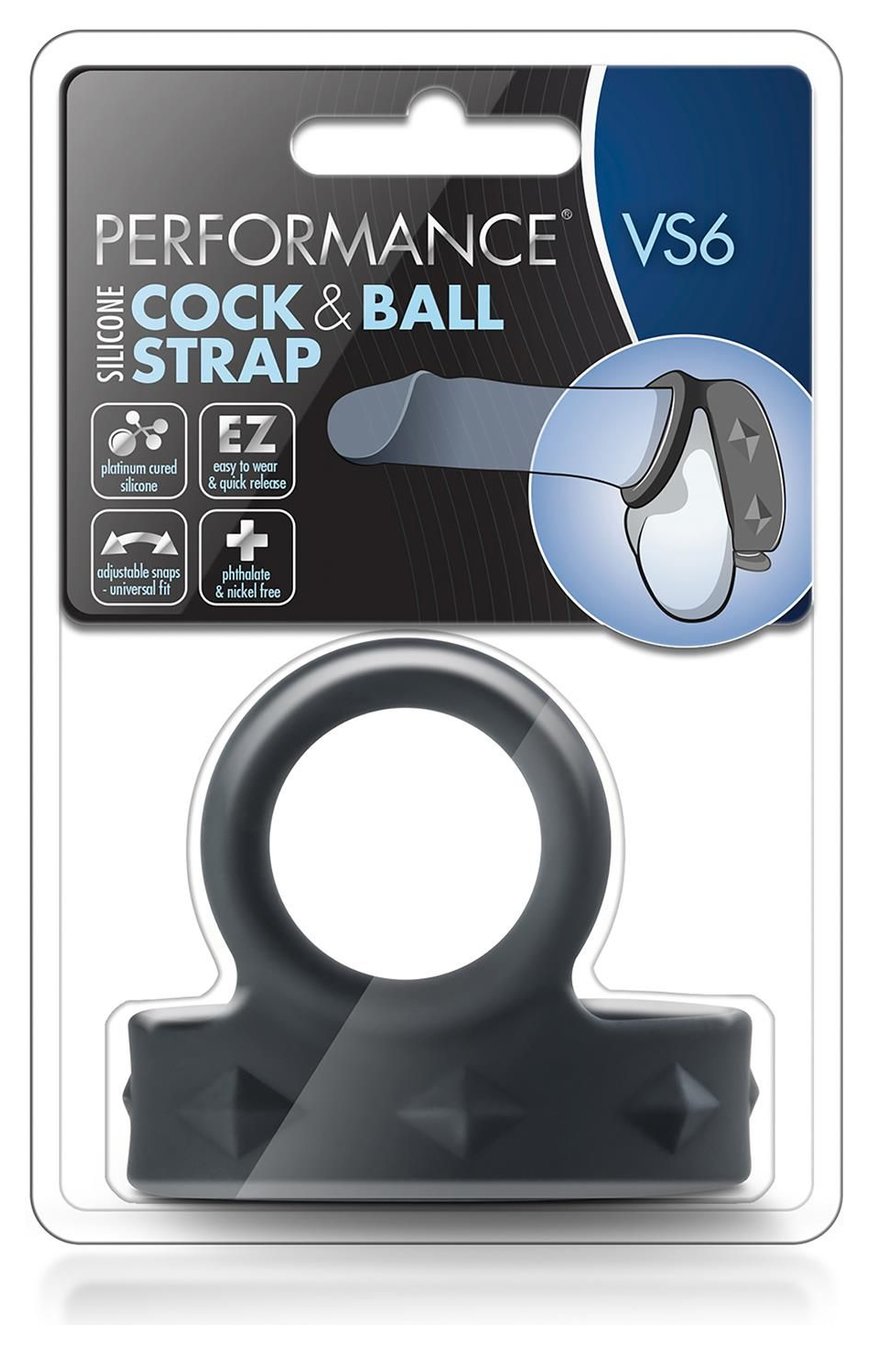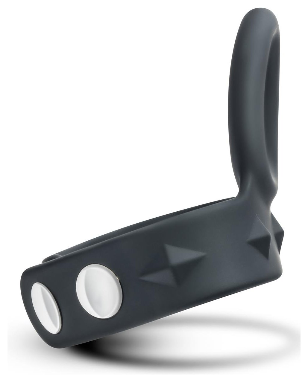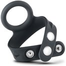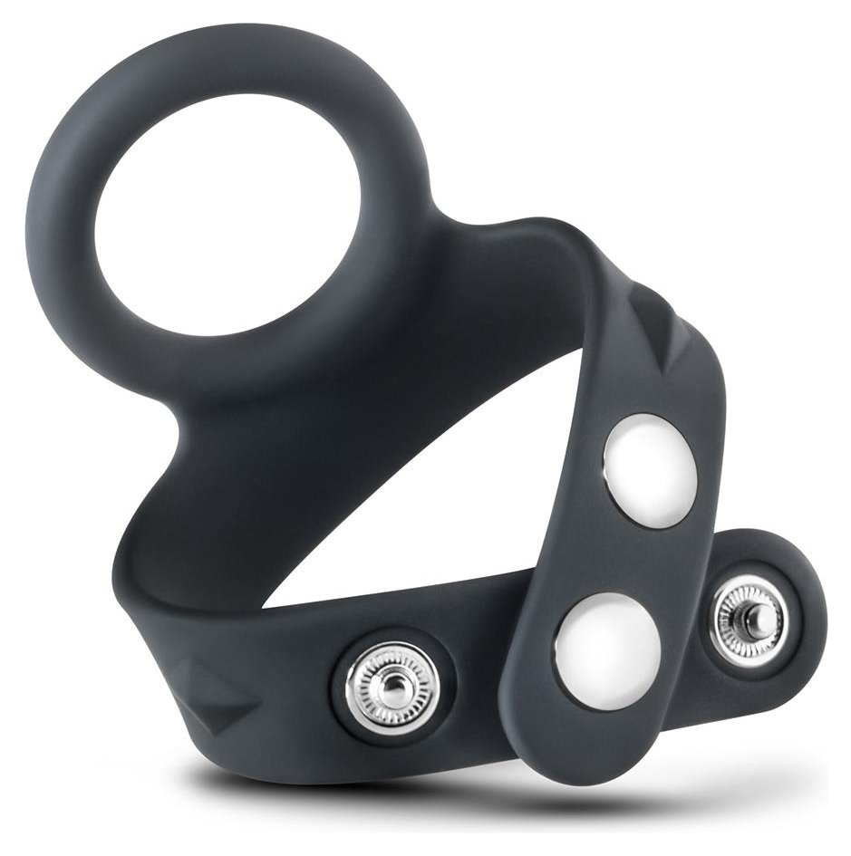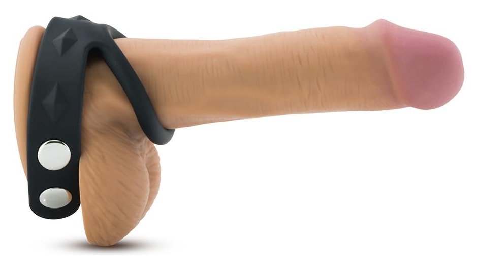 Черное эрекционное кольцо с подхватом мошонки на кнопках VS6
