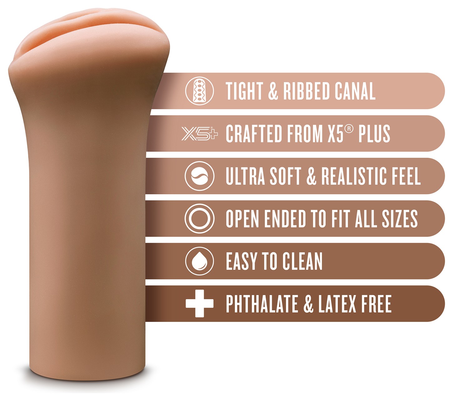 - Внутренняя текстура: рельефный тоннель с усиленной плотностью для интенсивной стимуляции.