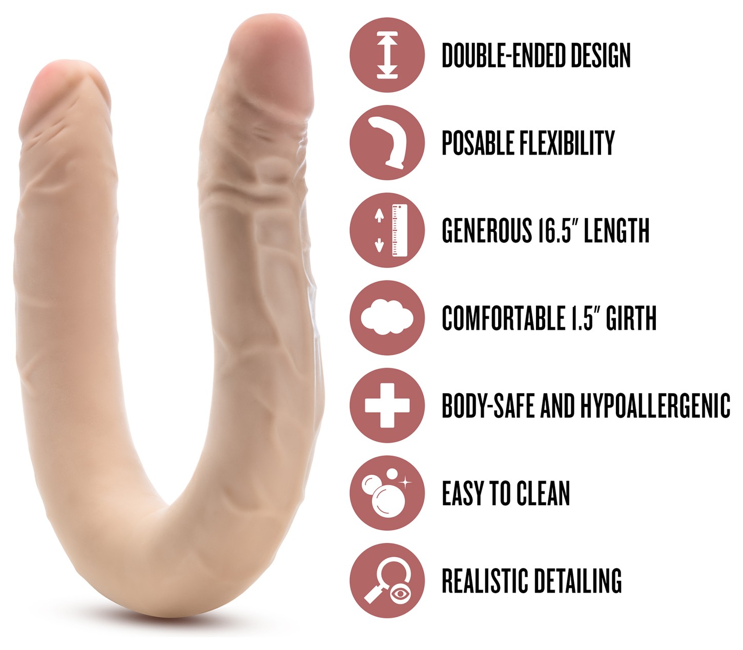 Телесный двусторонний фаллоимитатор 16.5 Inch Double Dong длиной 41,9 см представляет собой уникальную секс-игрушку для парной игры. Фаллоимитатор реалистичен на ощупь и гибкий, что обеспечивает комфорт при использовании. Двусторонняя конструкция позволяет одновременно стимулировать обоих партнеров, создавая особенные ощущения во время интимной близости. Телесный цвет придает игрушке естественный внешний вид, а гибкий материал адаптируется к изгибам тела для максимального комфорта. Фаллоимитатор подходит для вагинальной и анальной стимуляции.