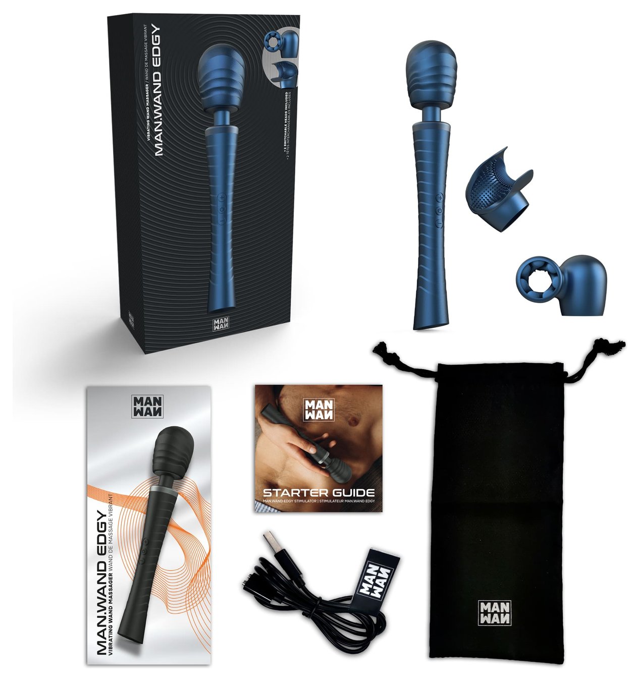 Синий вибромассажёр с насадками Man.wand Edgy
