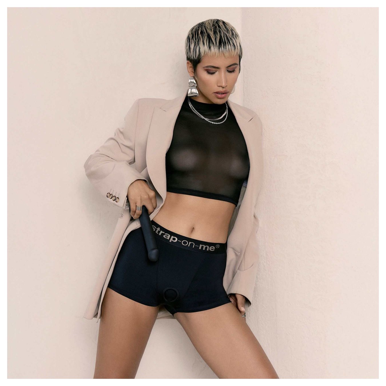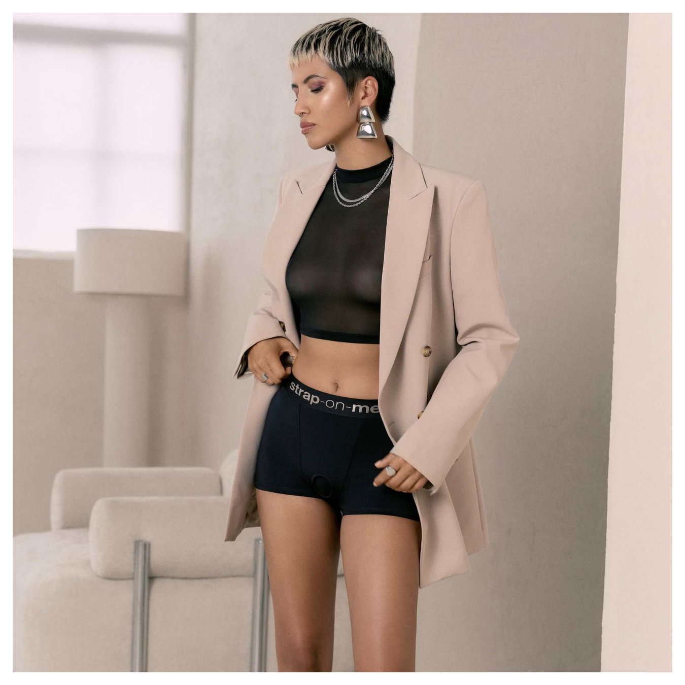 Черные трусики-боксеры для фиксации насадок Strap-on-me Harness Lingerie Allure - size S