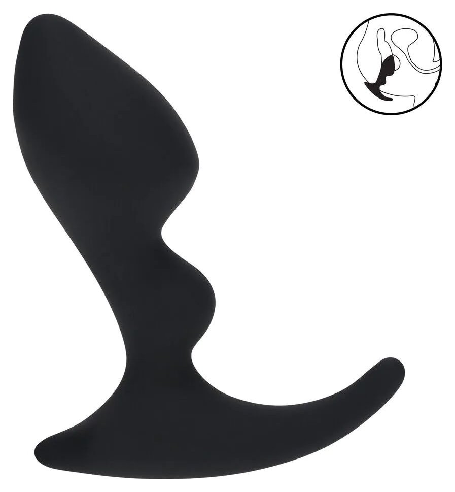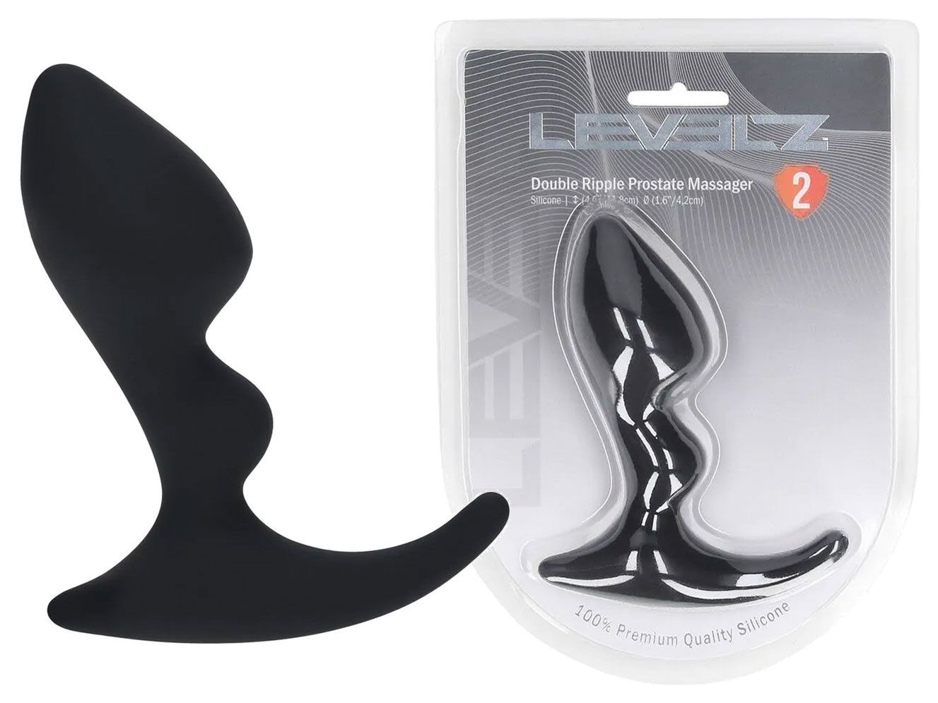 Черная анальная пробка для массажа простаты Double Ripple Silicone Prostate Massager