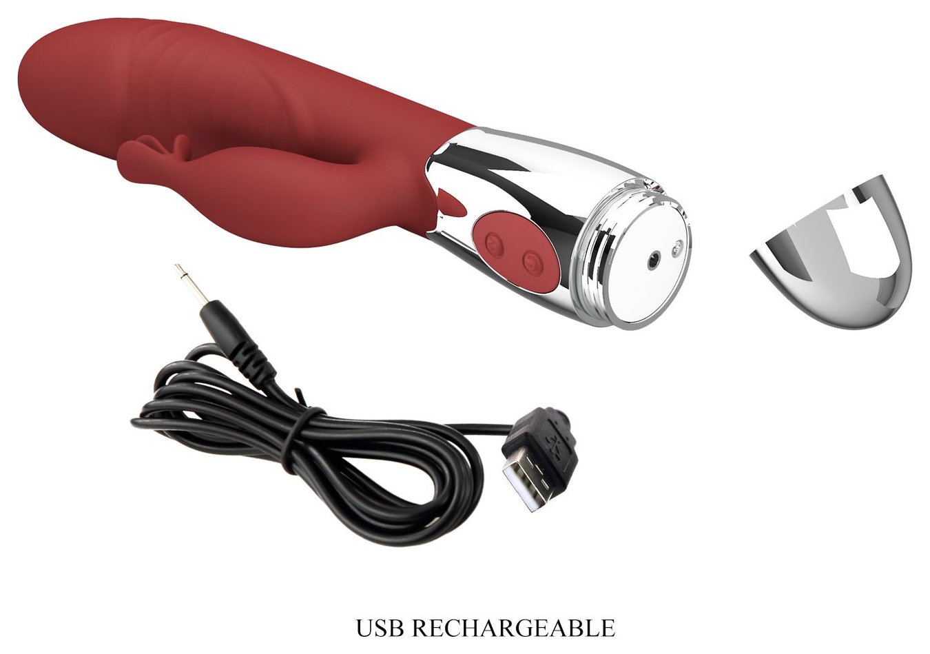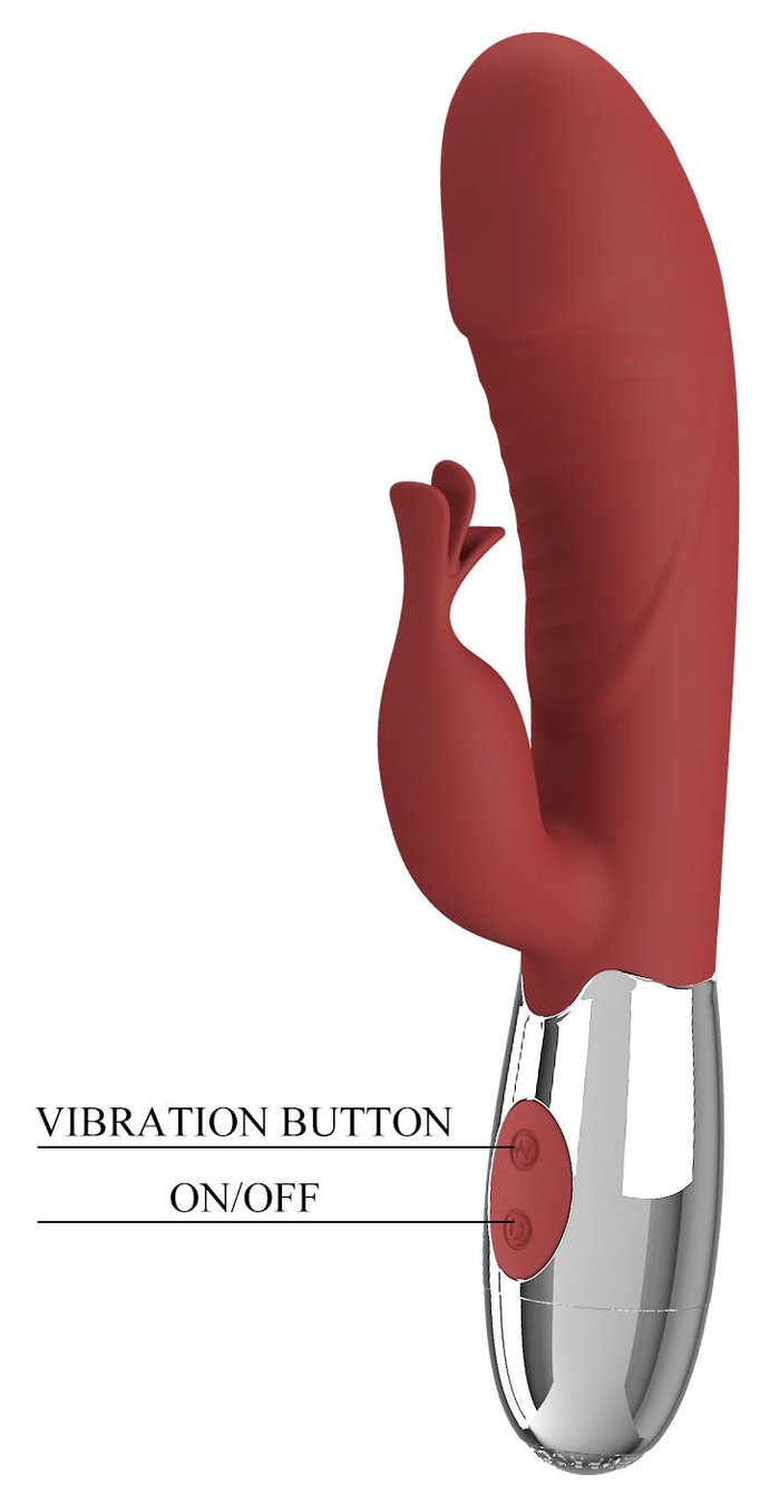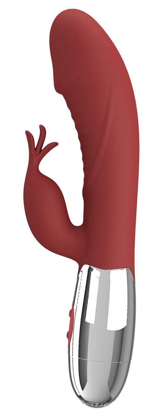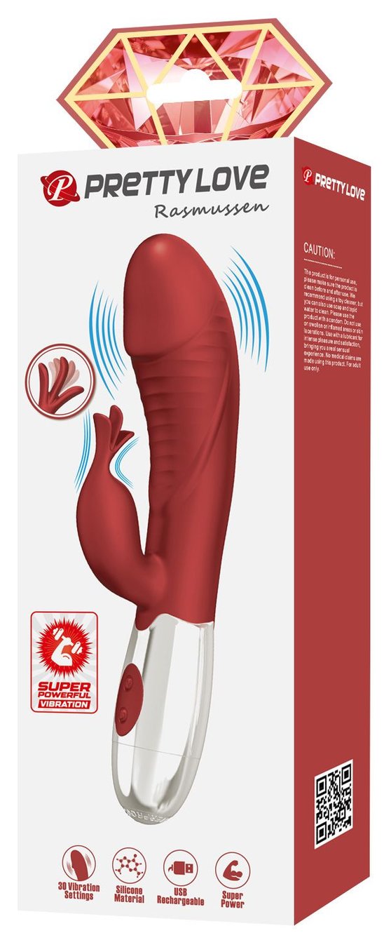 Красный вибратор со стимулятором клитора Rasmussen - 19,8 см