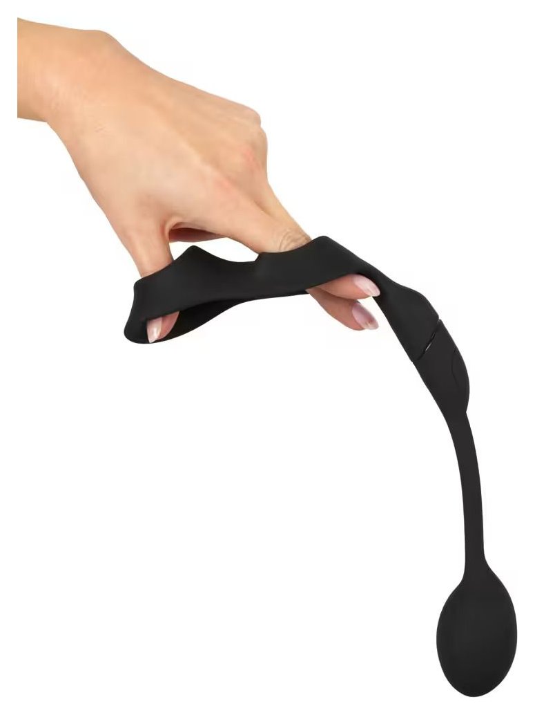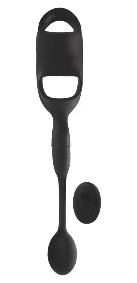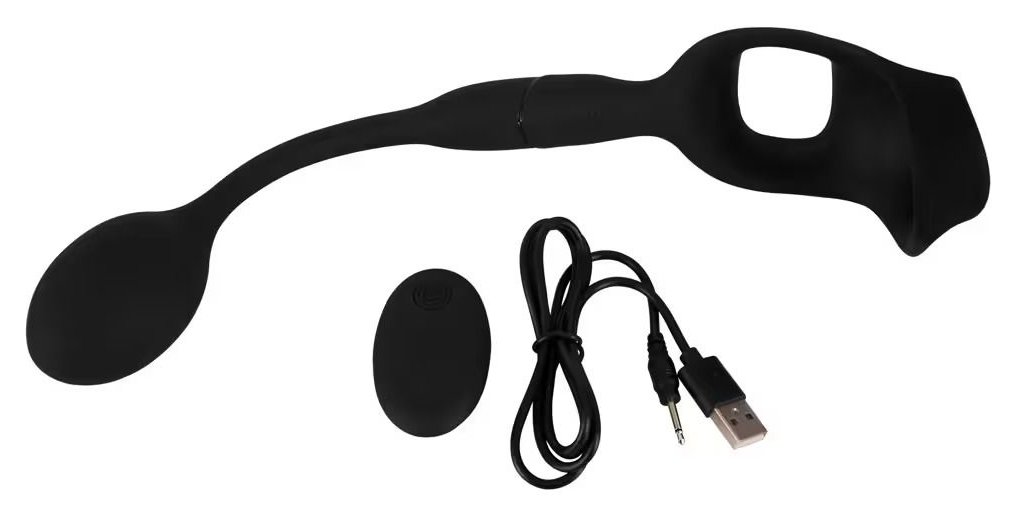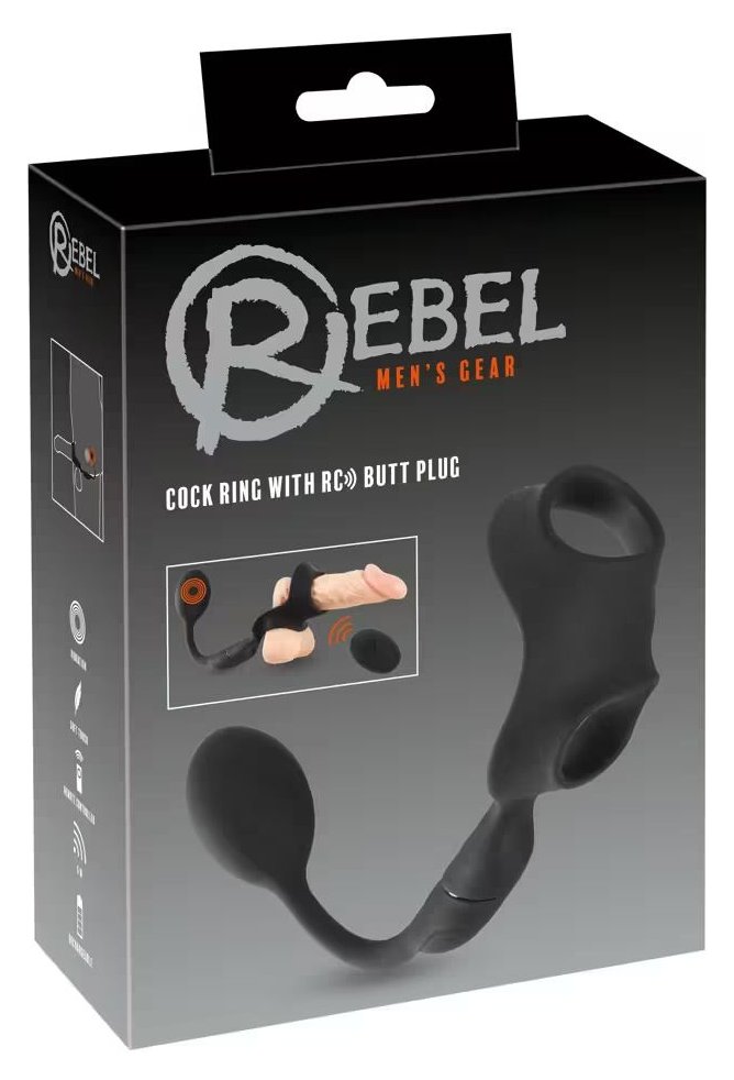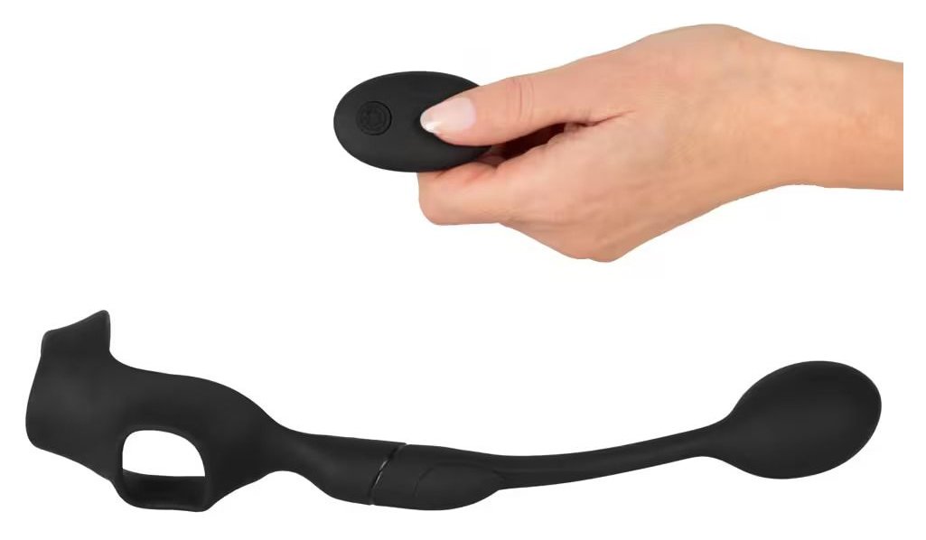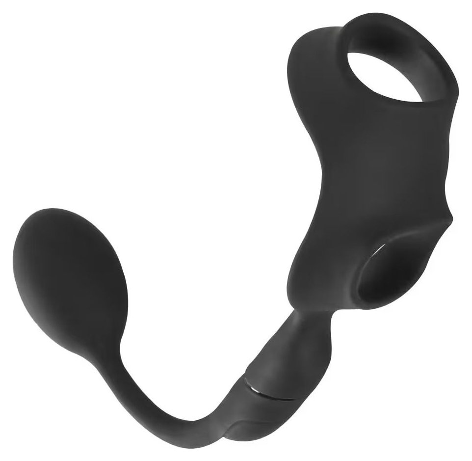 Черное виброкольцо с анальной пробкой Cock Ring with RC Butt Plug