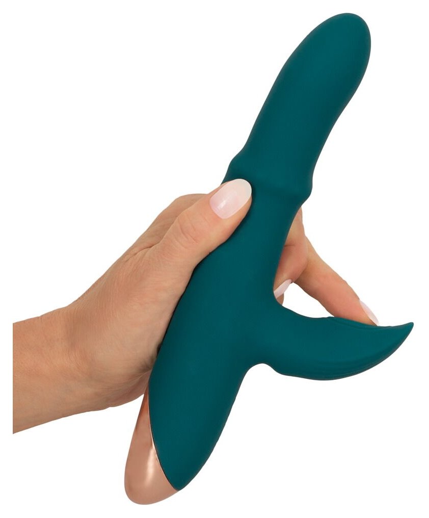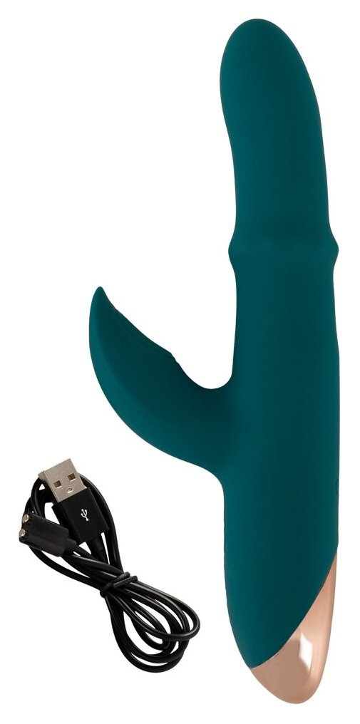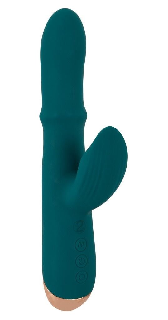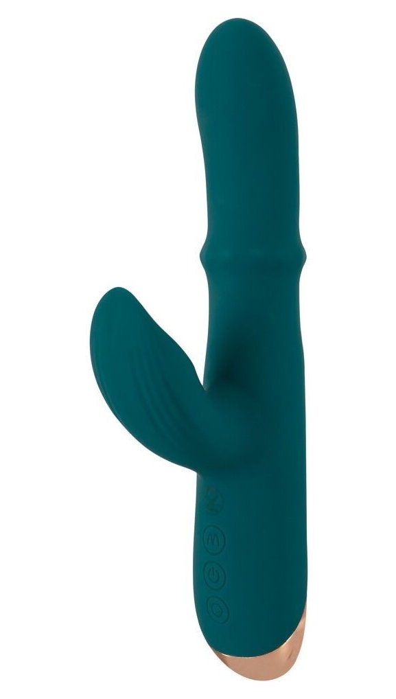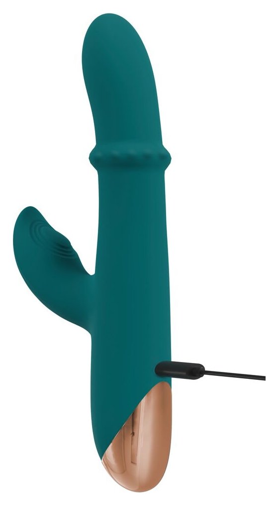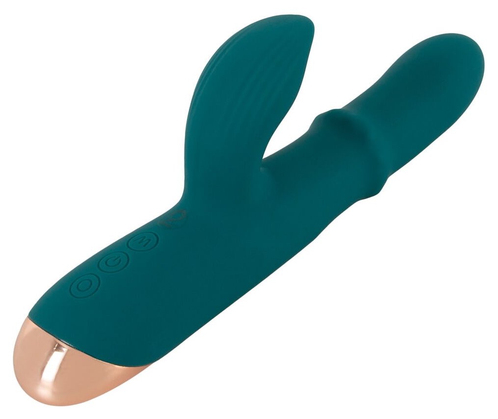 Зеленый вибратор-кролик с подвижным кольцом Thumping Rabbit Vibrator - 22,7 см