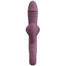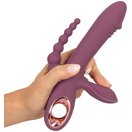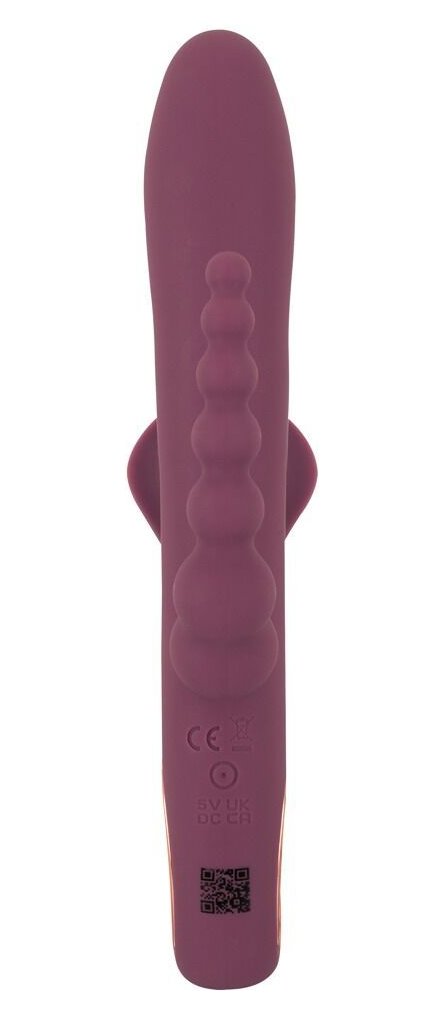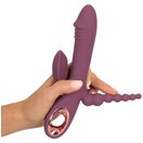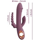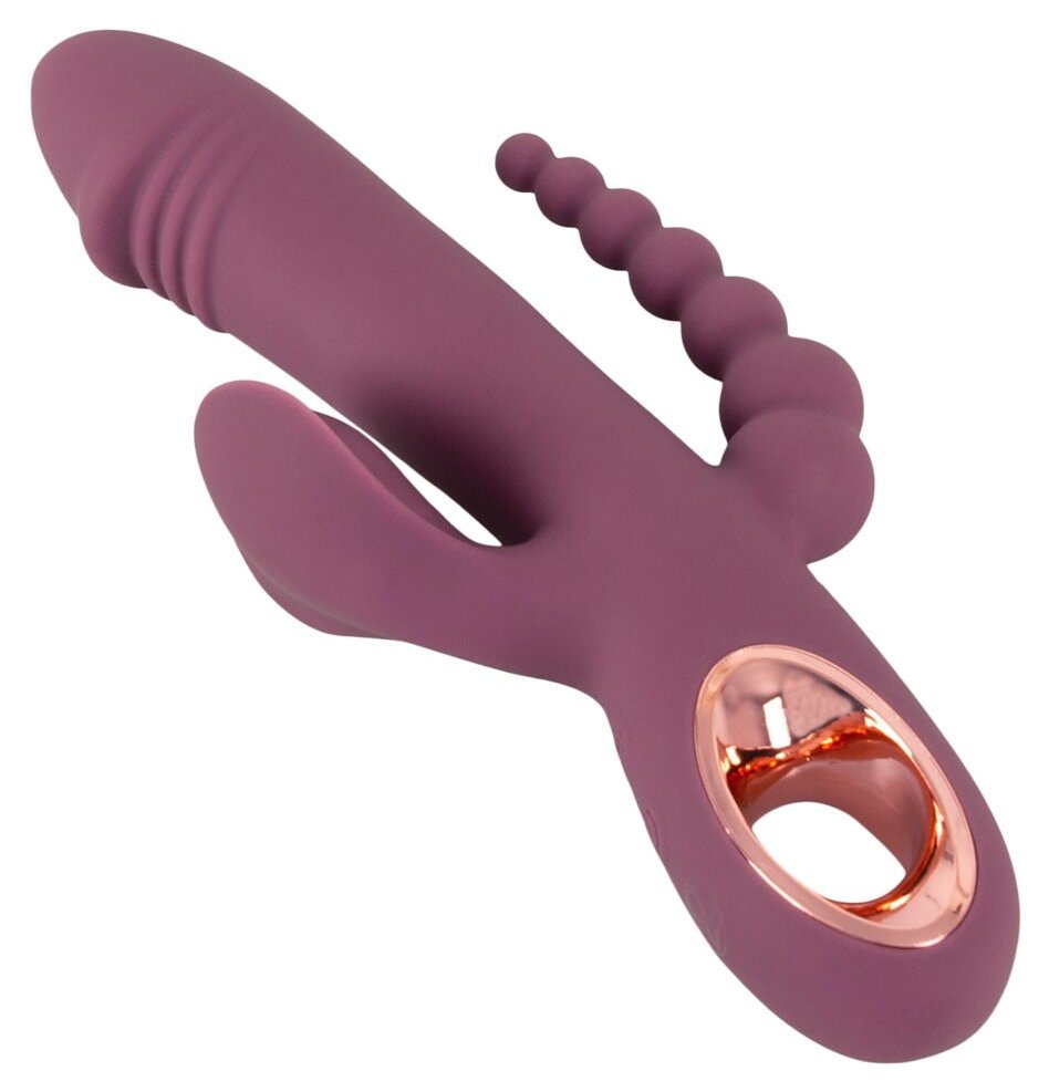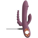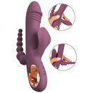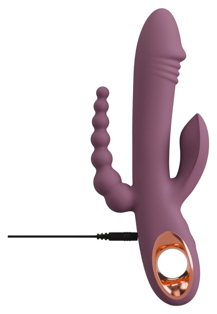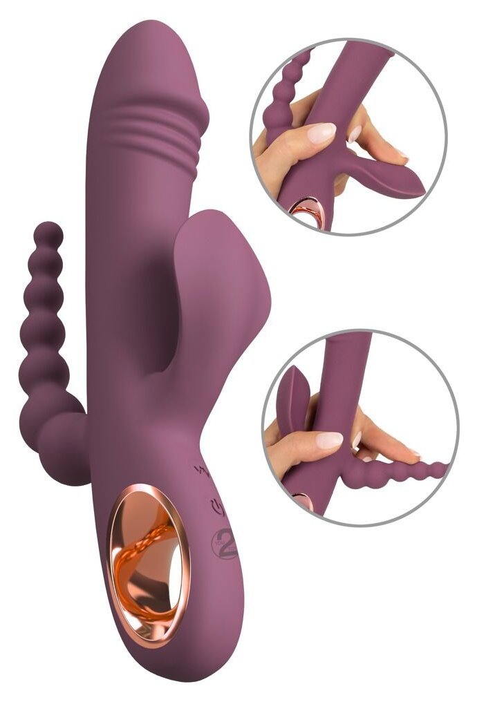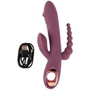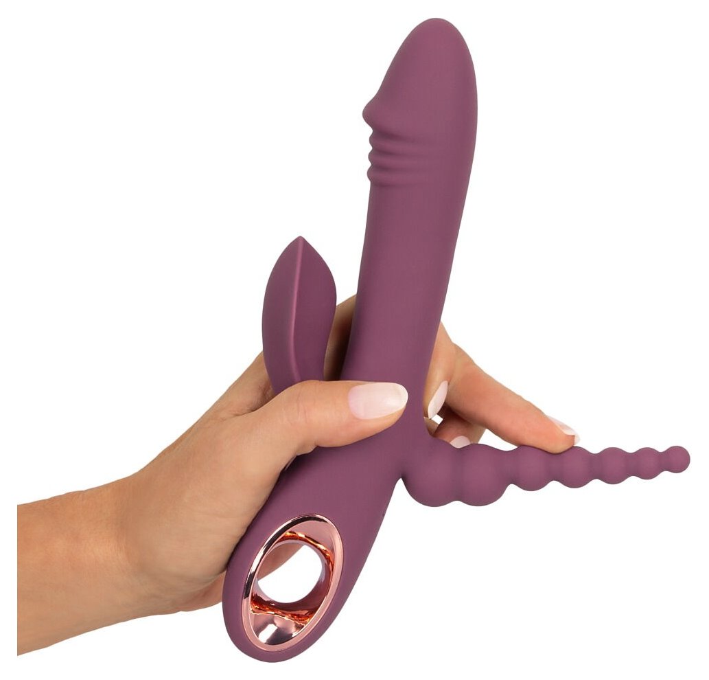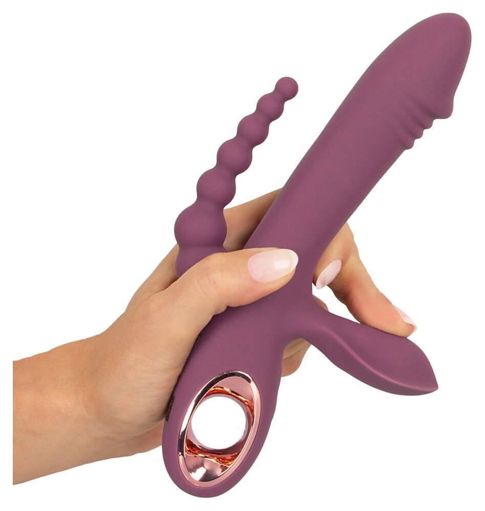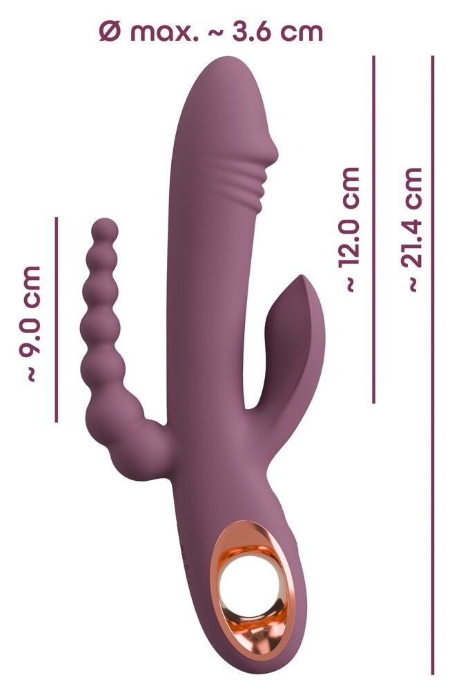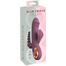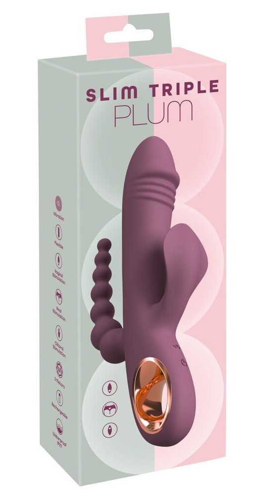 Сливовый вибратор с клиторальным отростком и анальным хвостом Slim Triple Plum - 21,4 см