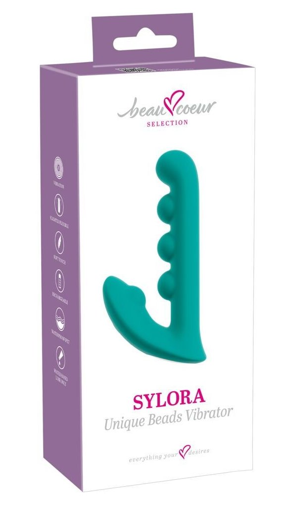 Зеленый вибратор SYLORA Unique Beads Vibrator - 17 см