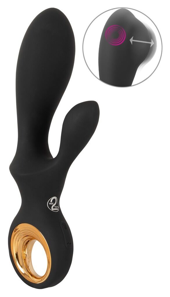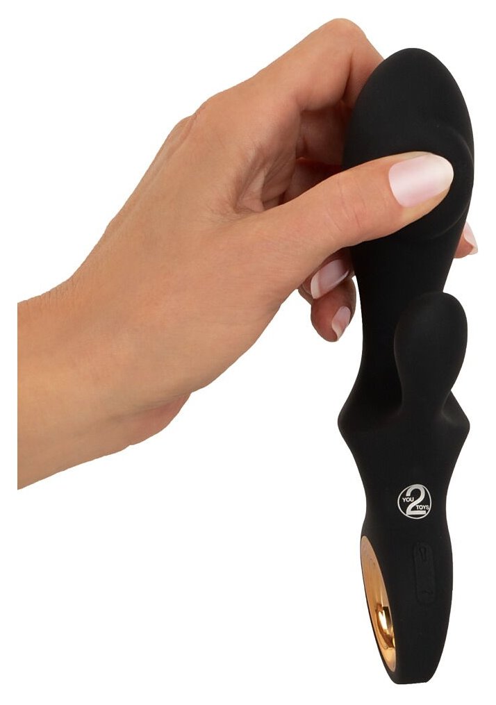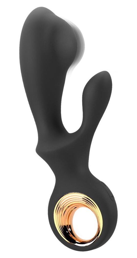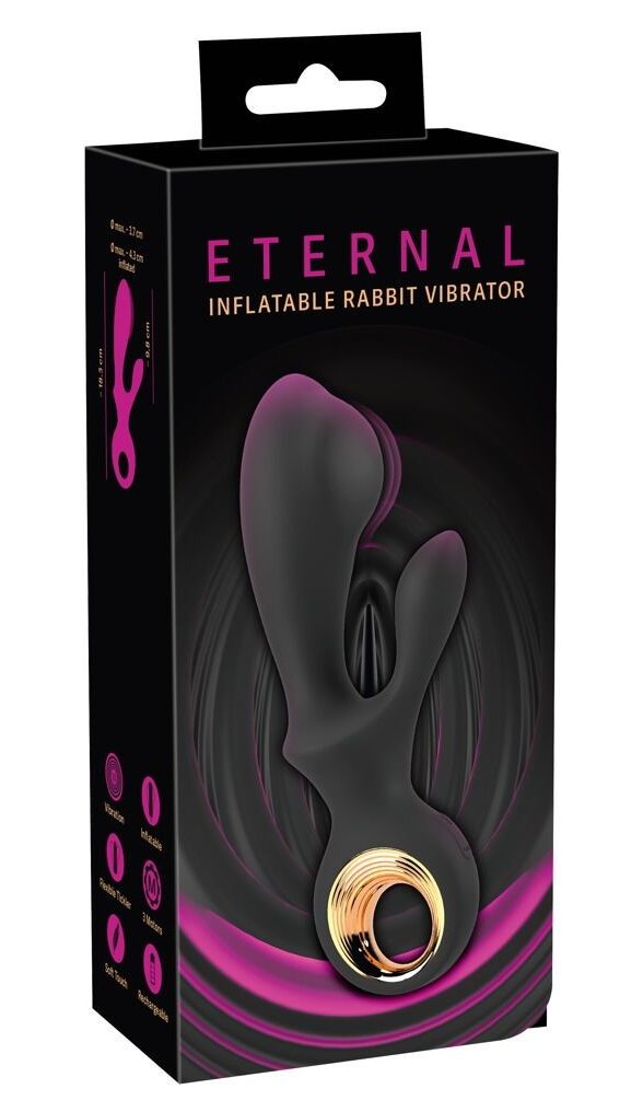 Черный вибратор-кролик с функцией расширения Inflatable Rabbit Vibrator - 18,3 см