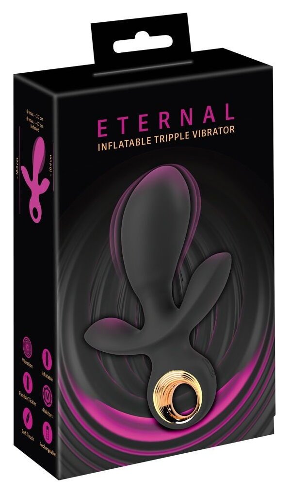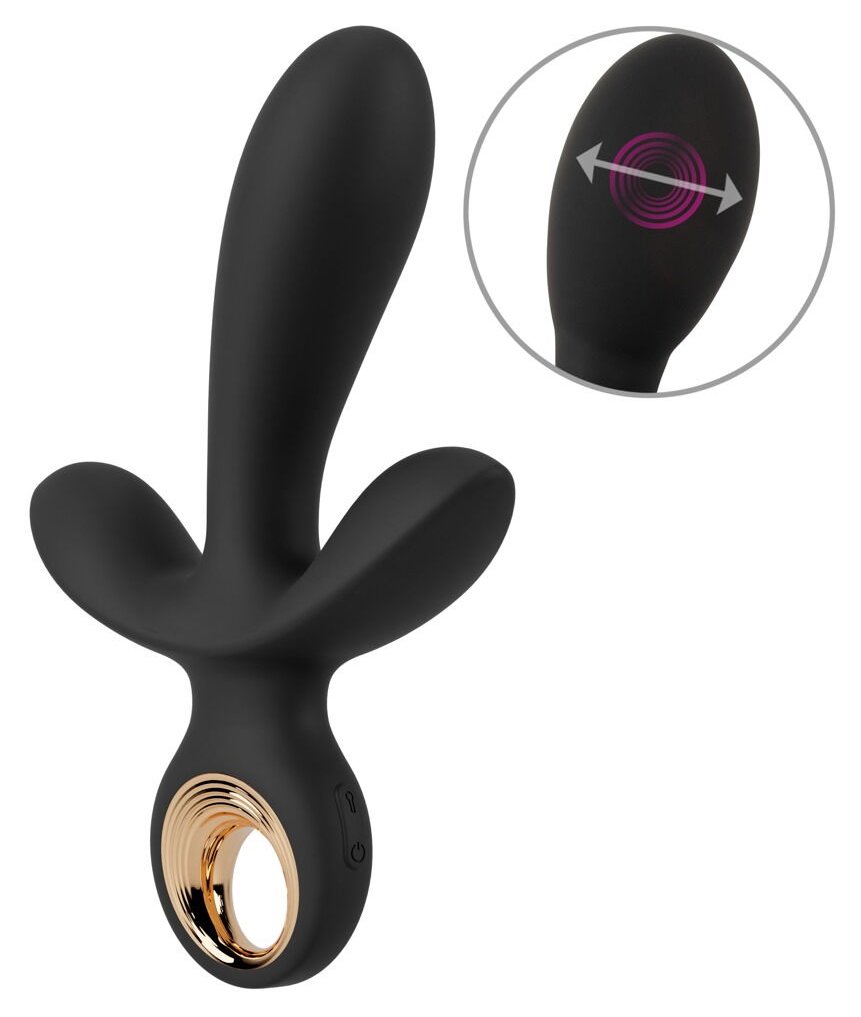 Черный вибратор с функцией расширения Inflatable Triple Vibrator - 18,9 см