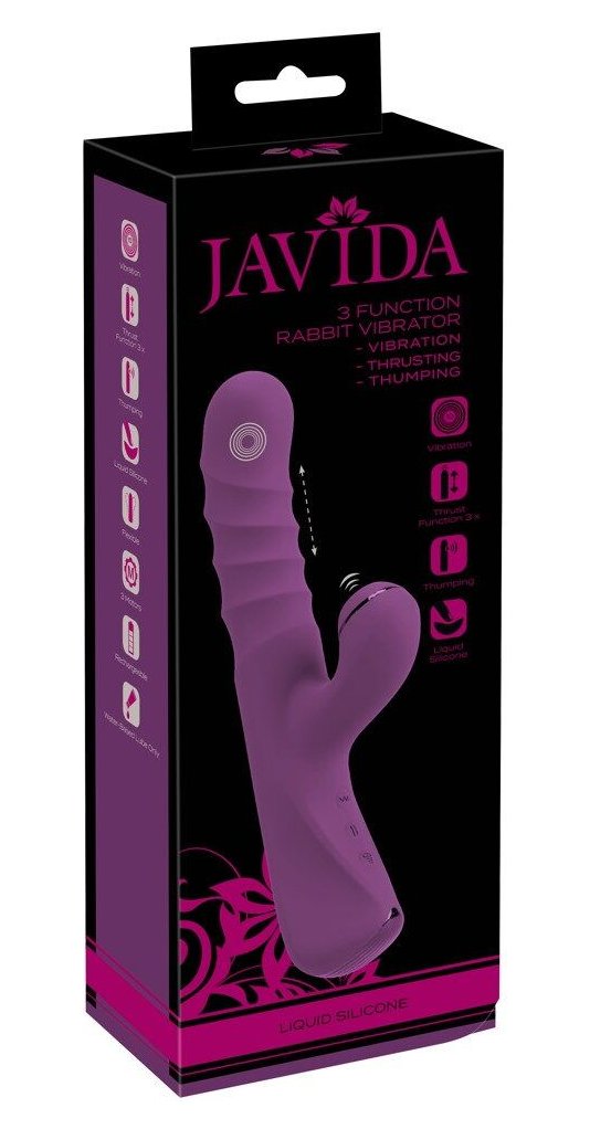 Фиолетовый вибратор-кролик с функцией постукивания и фрикциями 3 Function Rabbit Vibrator - 23,7 см