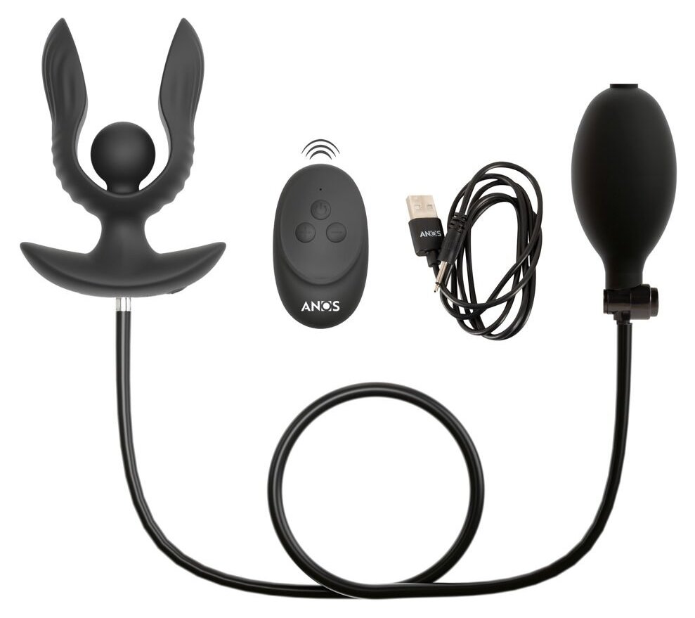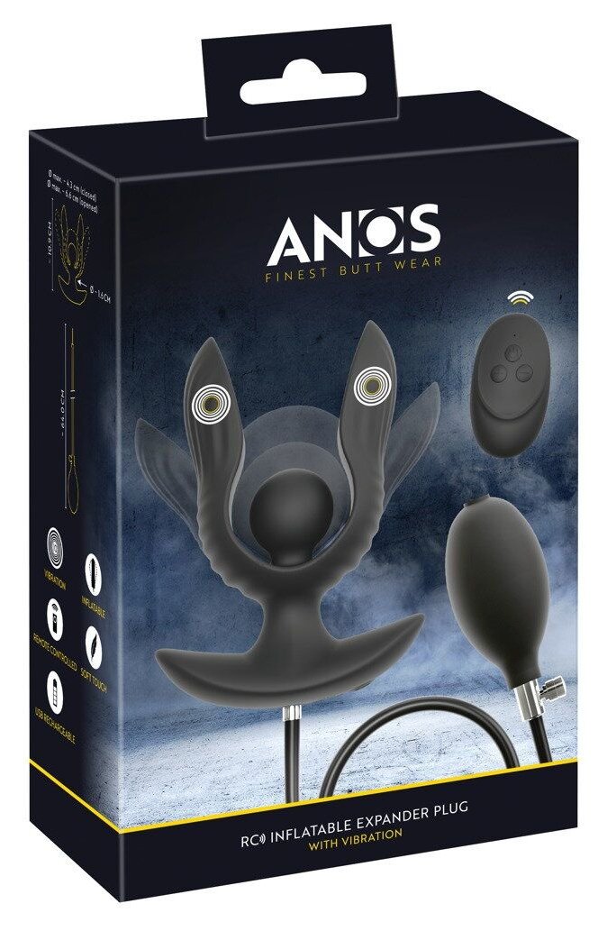 Черная расширяющаяся анальная пробка с вибрацией RC Inflatable Expander Plug with Vibration