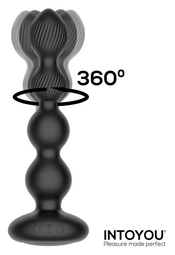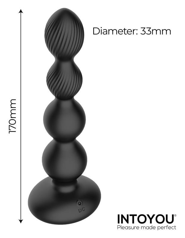 Черная анальная ёлочка с вибрацией, вращением и пультом ДУ