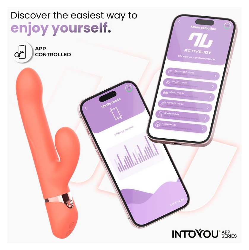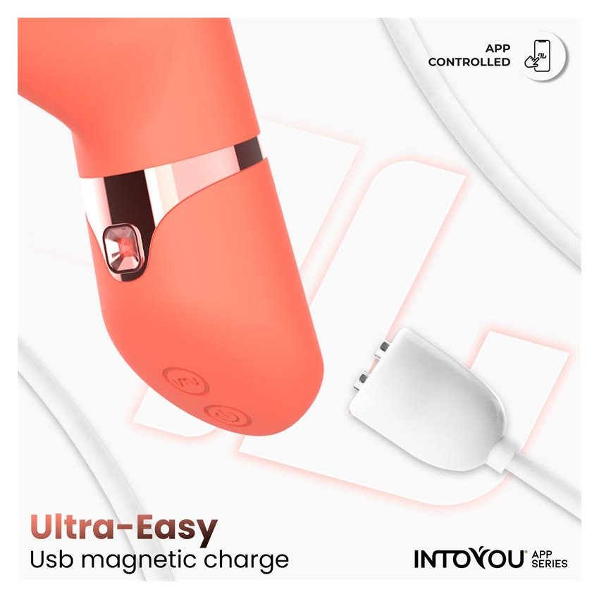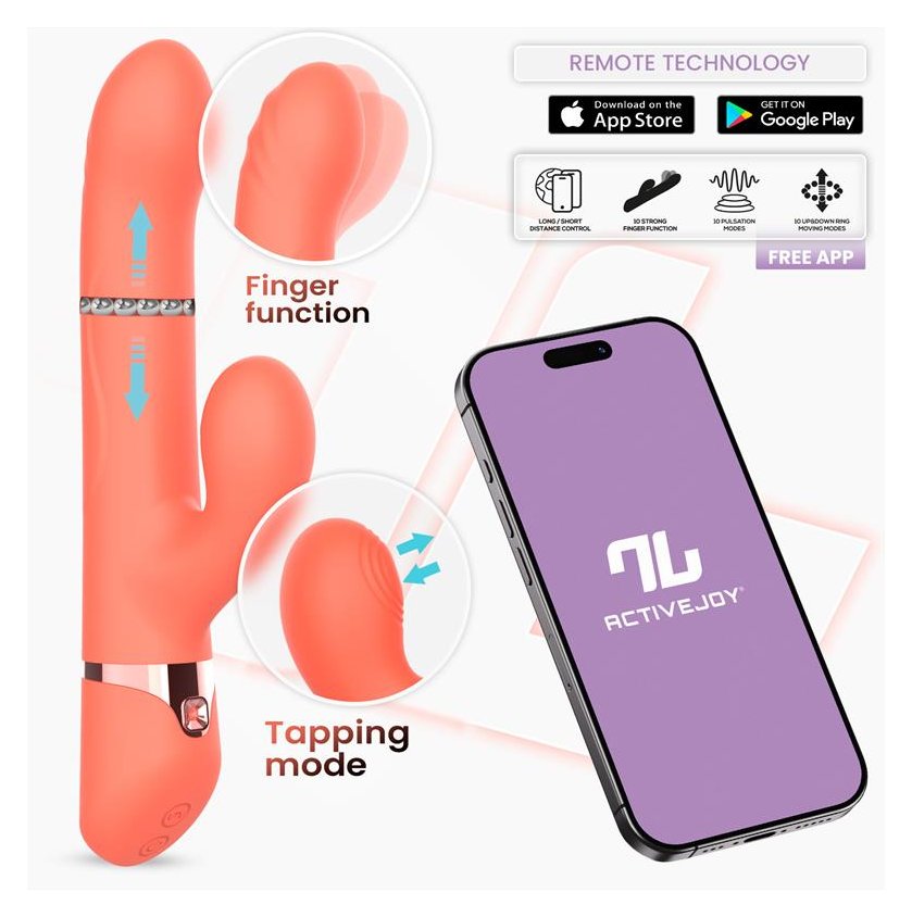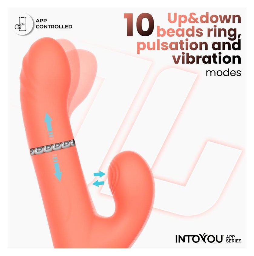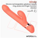 Коралловый вибратор-кролик с кольцом из бусин и имитацией фингеринга Mindy