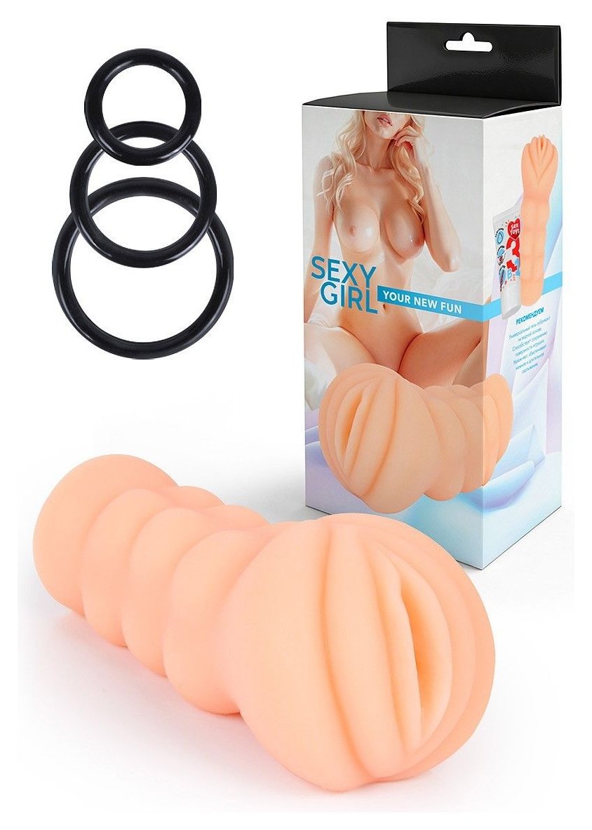 Телесный мастурбатор-вагина с эрекционными кольцами в комплекте