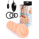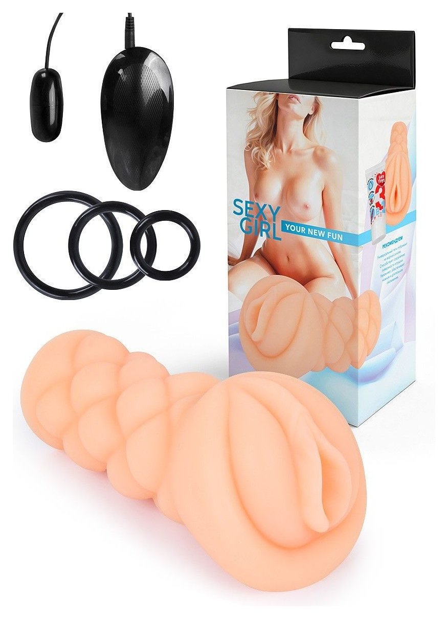 Телесный мастурбатор-вагина с вибропулей и эрекционными кольцами в комплекте