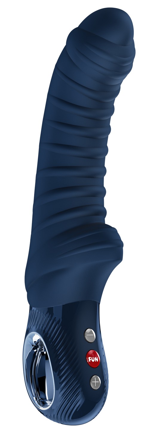 Синий вибратор Tiger с ребрышками - 22,5 см