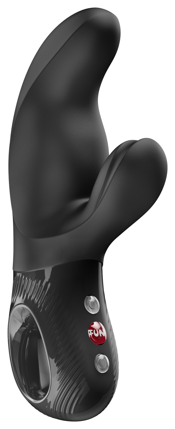 Черный вибратор с клиторальным стимулятором Miss Bi - 17 см