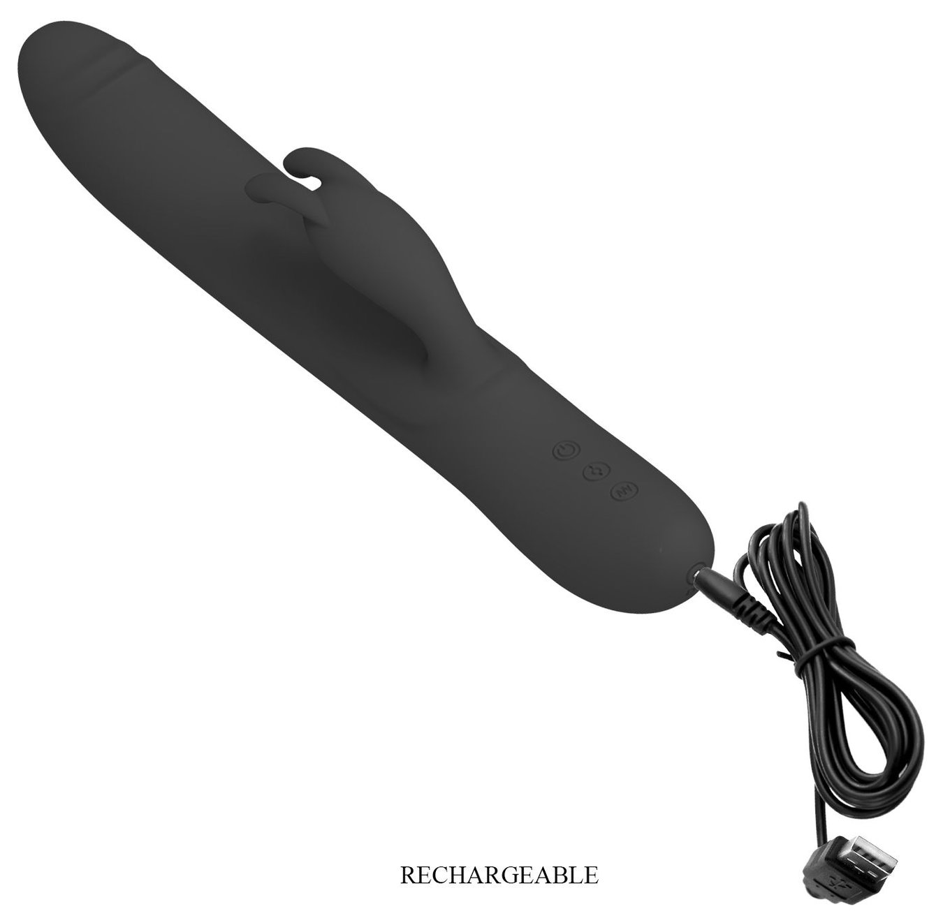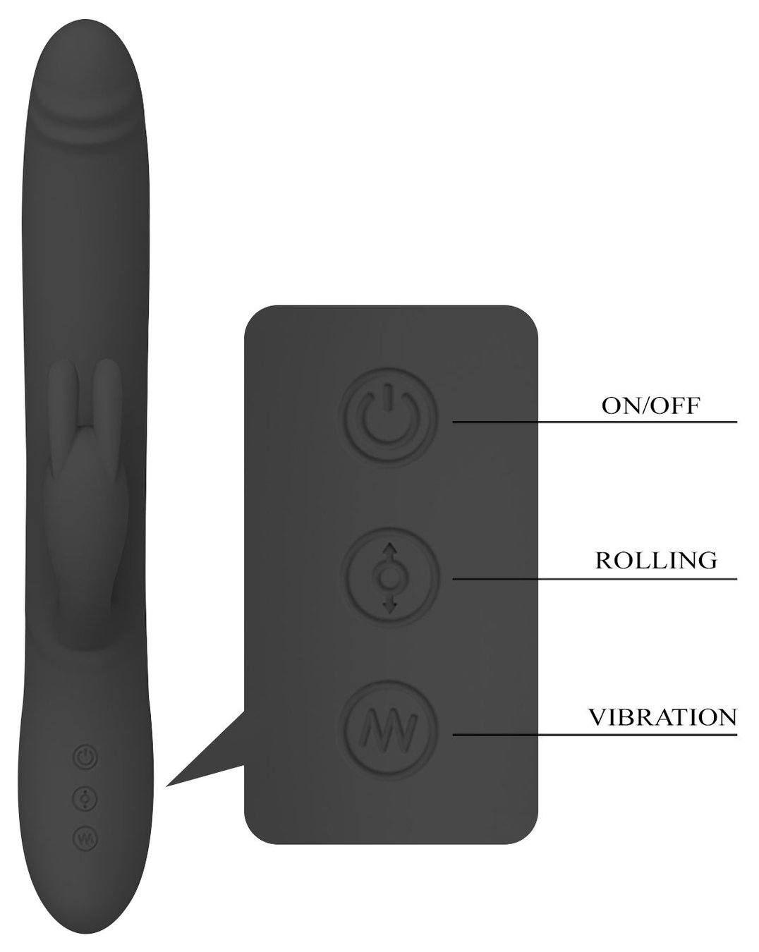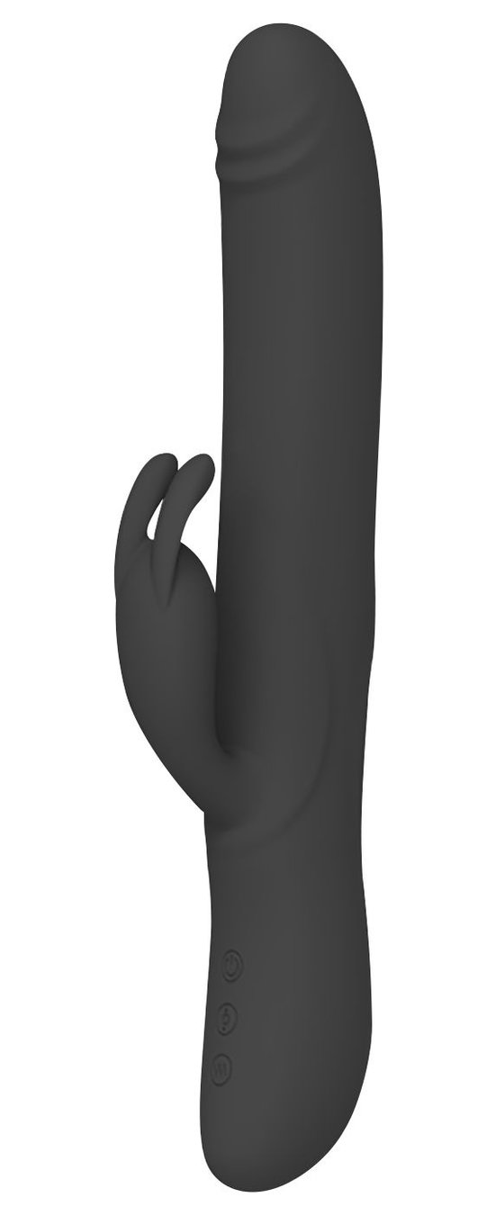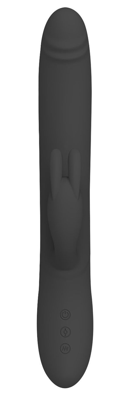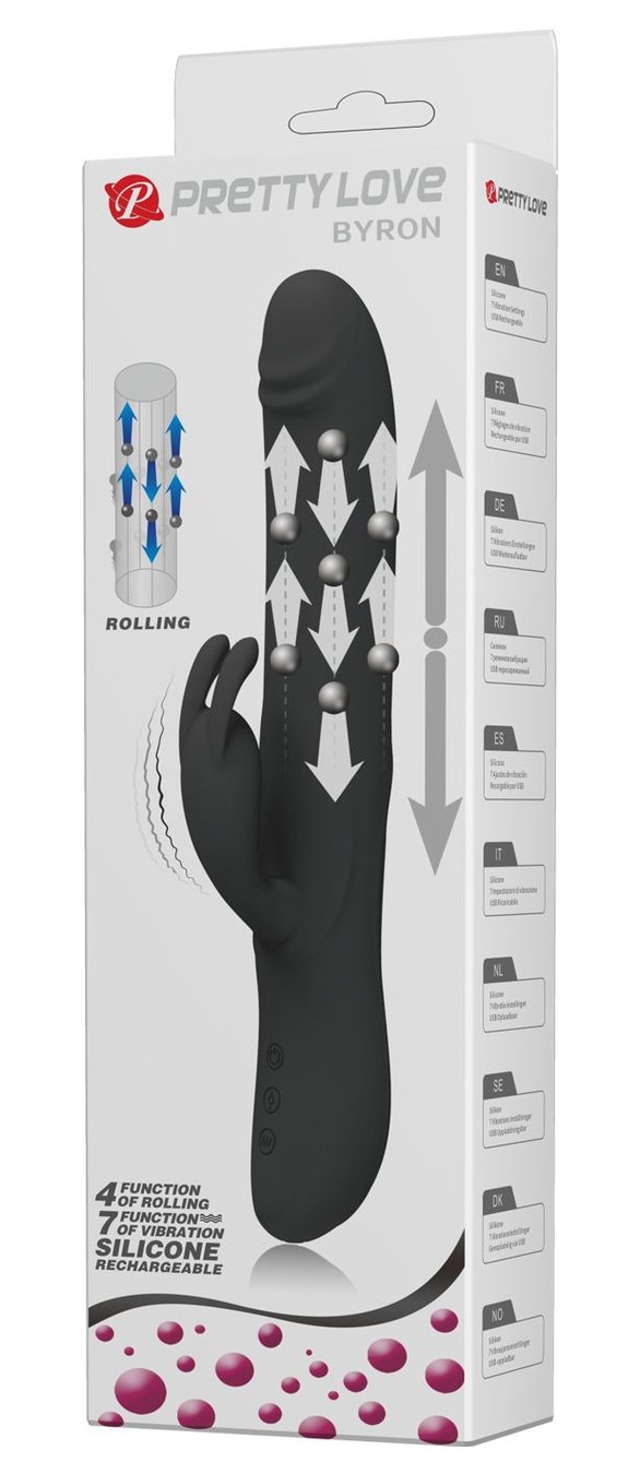 Черный вибратор-кролик Byron с движущимися шариками - 25 см