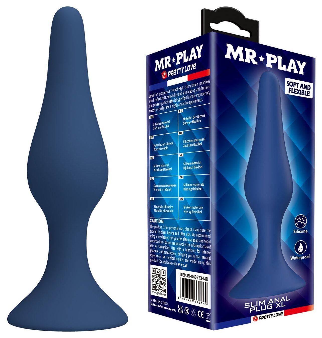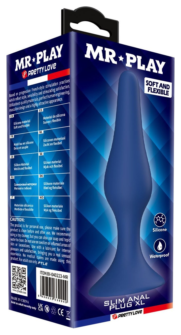 Синяя анальная пробка Slim Anal Plug XL - 15,4 см