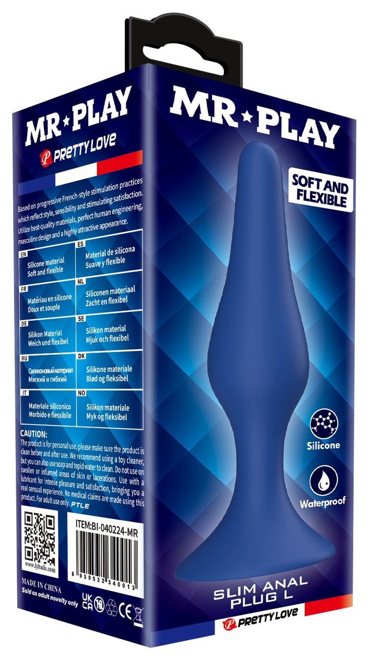 Синяя анальная пробка Slim Anal Plug L - 12,4 см