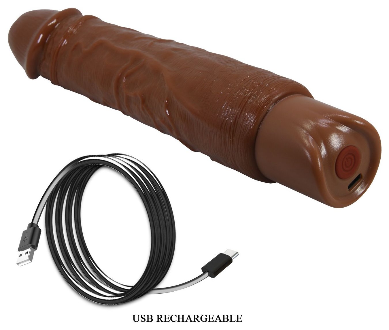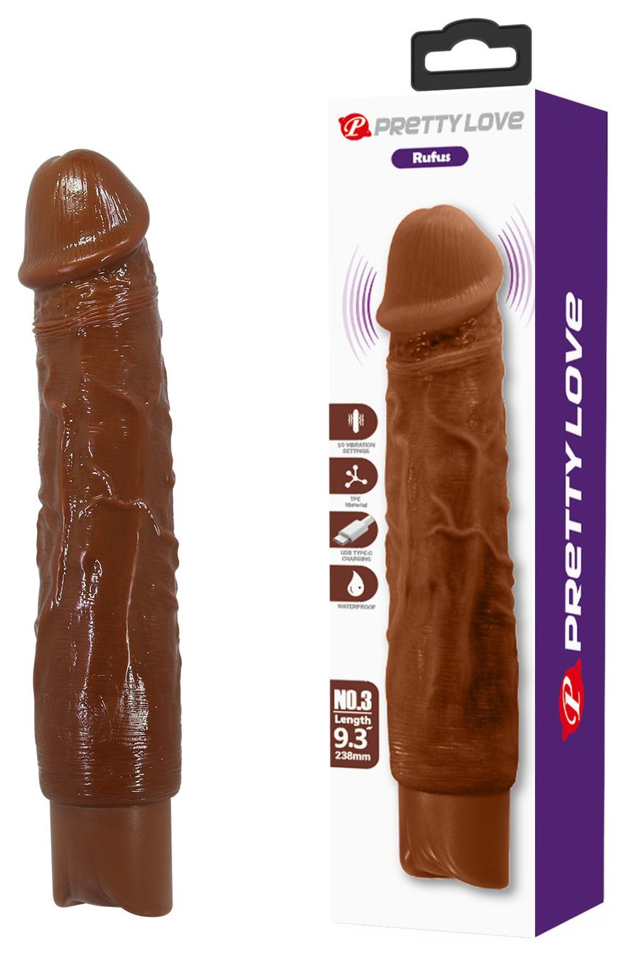 Коричневый реалистичный вибратор Rufus - 23,8 см