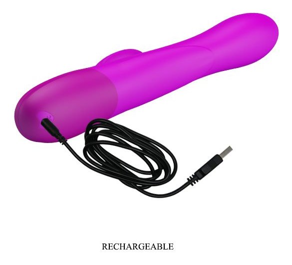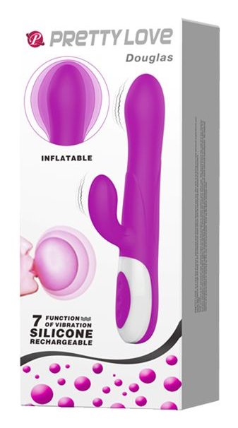 Лиловый вибратор Douglas с клиторальным отростком и функцией расширения - 24,9 см