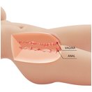 Торс Tiffany - реалистичный мастурбатор в формате женского тела с двумя каналами для разных сценариев. Объемная форма помогает удобно зафиксировать изделие на поверхности и держать контроль над темпом. Два входа позволяют менять ощущения без смены игрушки. Материал эластичный и тактильно мягкий, а вес дает устойчивость. Торс рассчитан на домашнее использование и не требует сложного ухода.