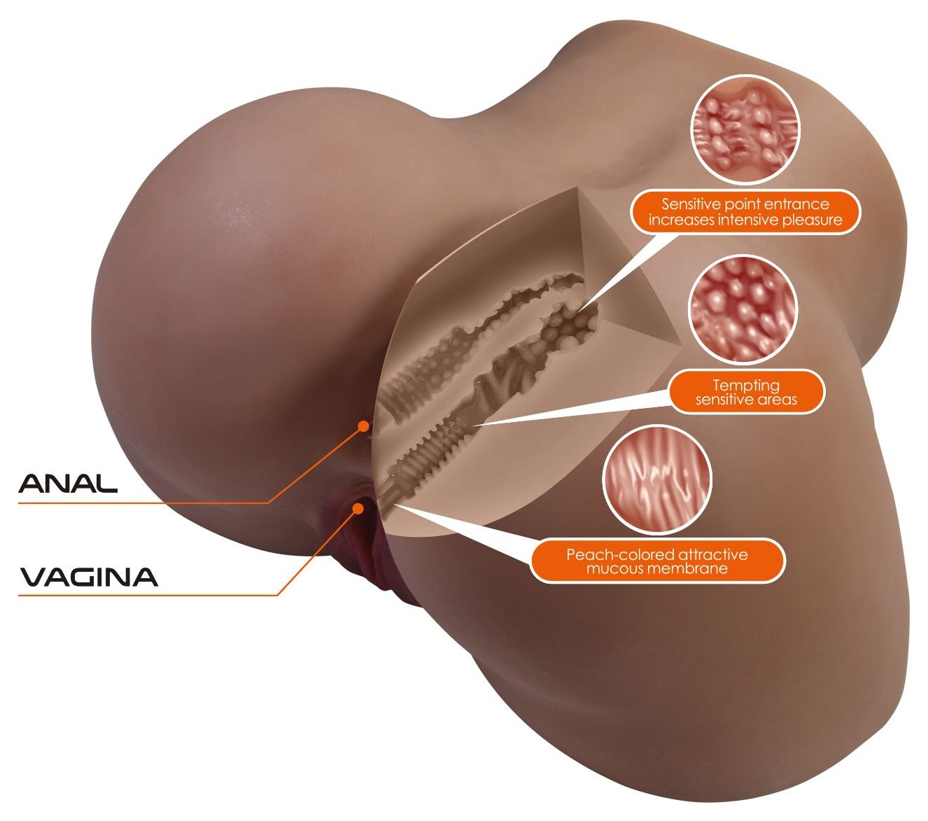 - Реалистичная форма: детальная проработка ягодиц из мягкого TPR, телесный оттенок.