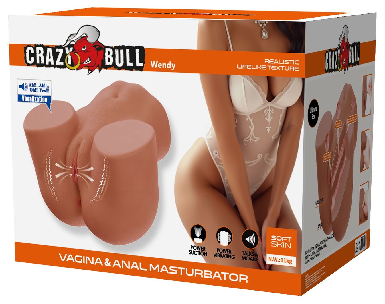Реалистичный мастурбатор Wendy с 2 тоннелями изготовлен из плотного и мягкого TPE с анатомической формой таза для максимально реалистичного внешнего вида и ощущений. Каждая деталь тщательно проработана для визуального удовольствия, а тело идеально подходит для любых поз — от догги-стайл до миссионерской или ковбойской. Устройство оснащено 10 режимами вибрации, 5 режимами всасывания, функцией Sex Talk для звукового сопровождения и двумя каналами — вагинальным и анальным — для разнообразной и насыщенной стимуляции. Полностью водонепроницаемое исполнение и USB-перезаряжаемый аккумулятор обеспечивают удобство, долговечность и автономность использования.