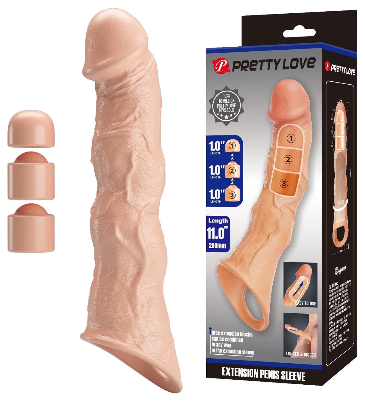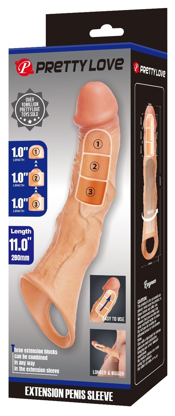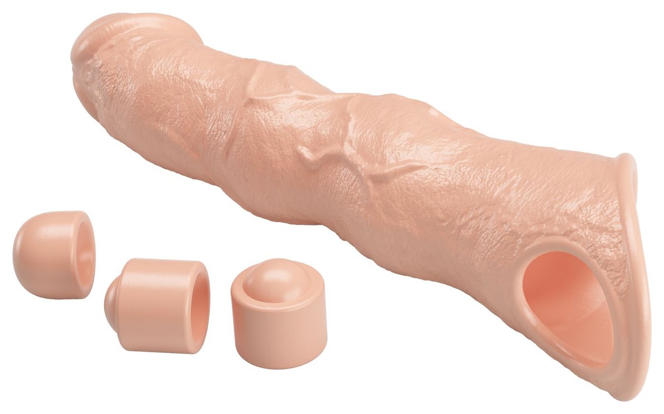 Телесный фаллоудлинитель с 3 вставками - 28 см