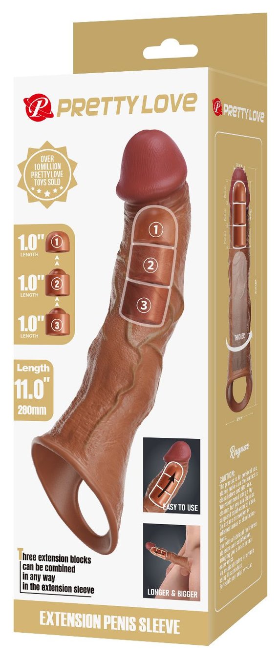Карамельный фаллоудлинитель с 3 вставками - 28 см