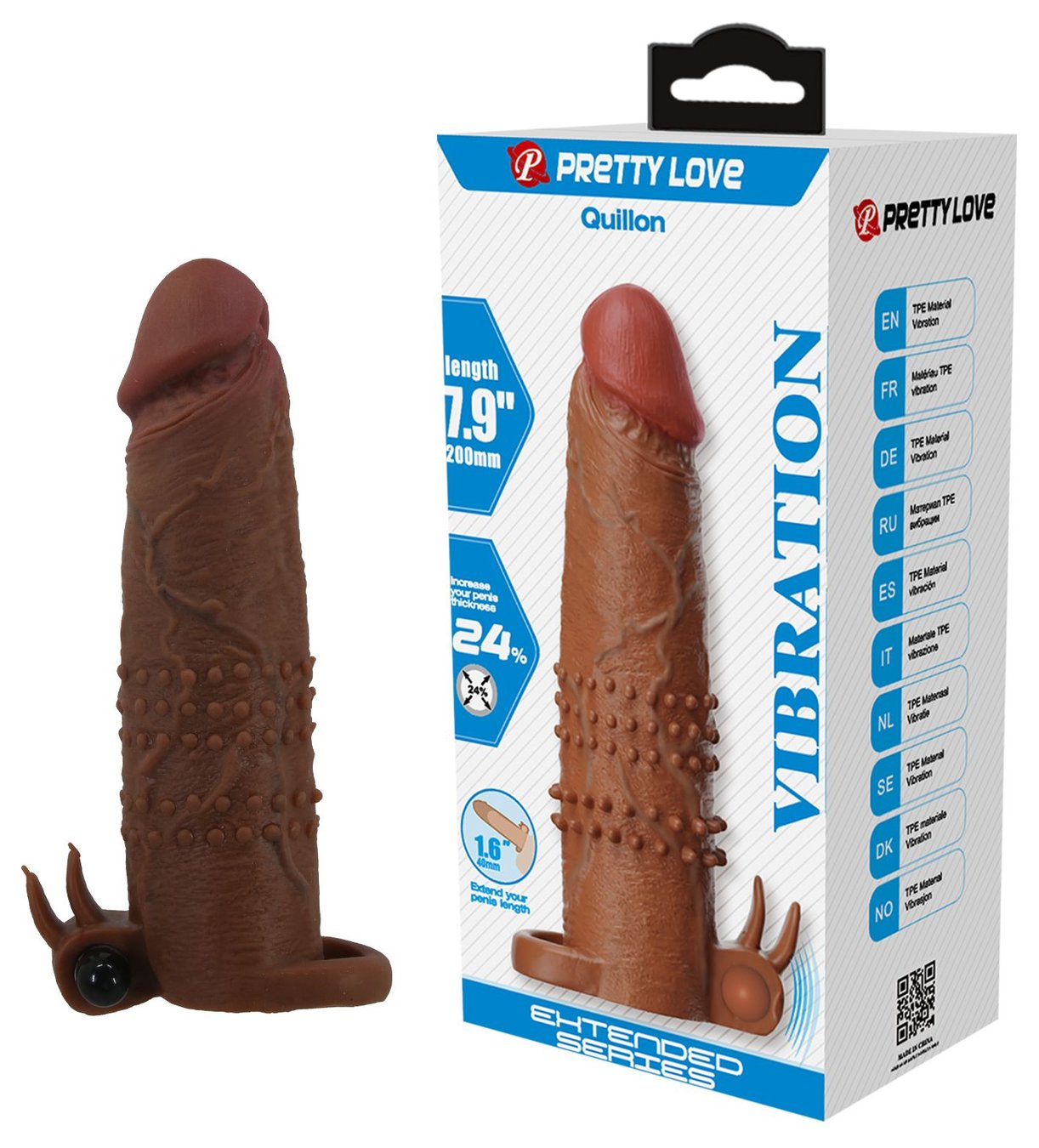 Коричневая насадка на пенис Quillon - 20 см