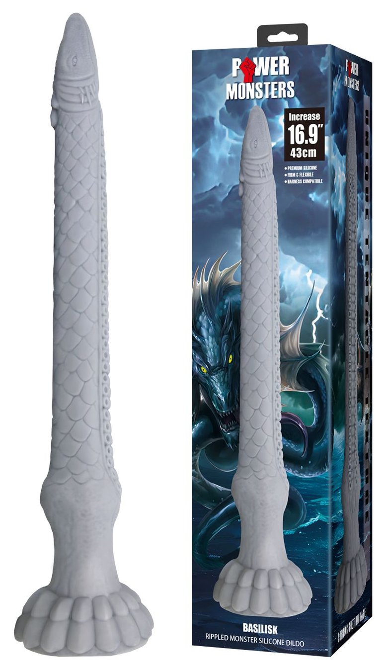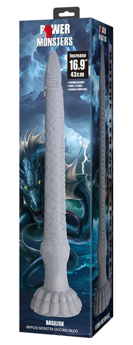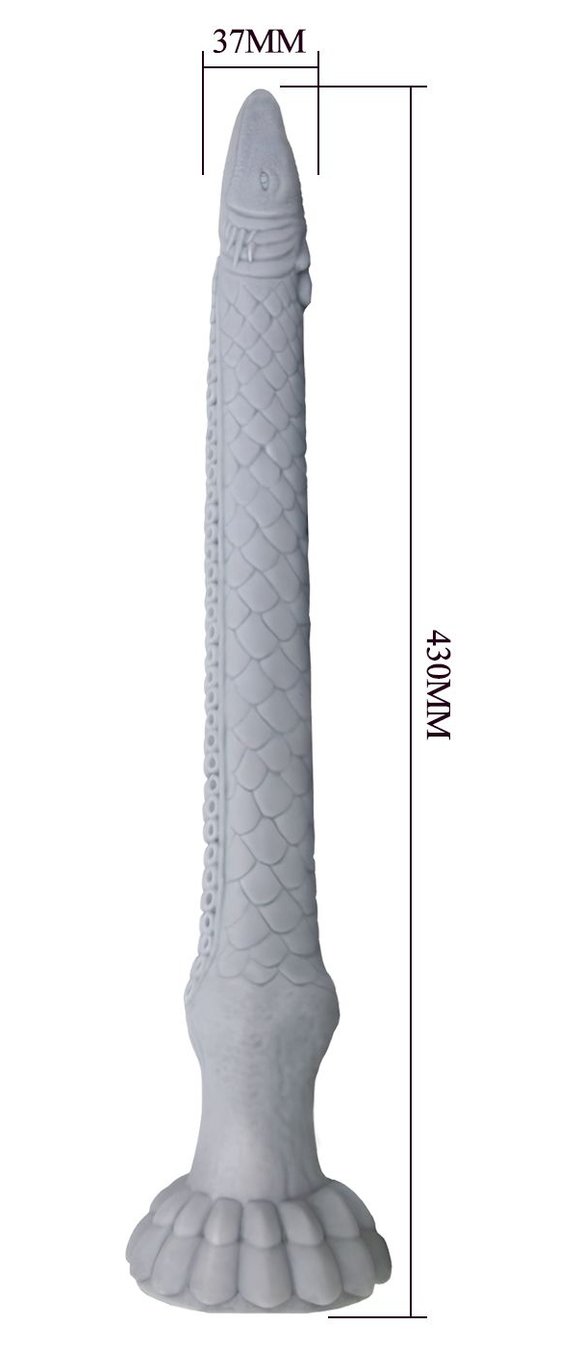 Серый силиконовый фаллоимитатор Basilisk - 43 см