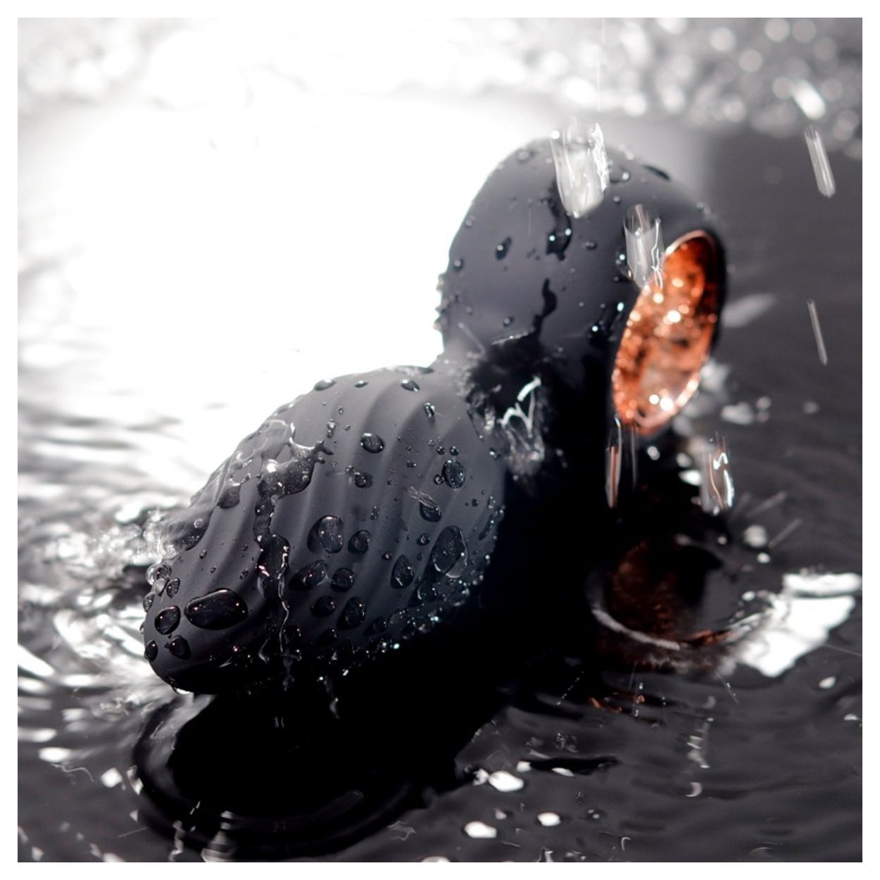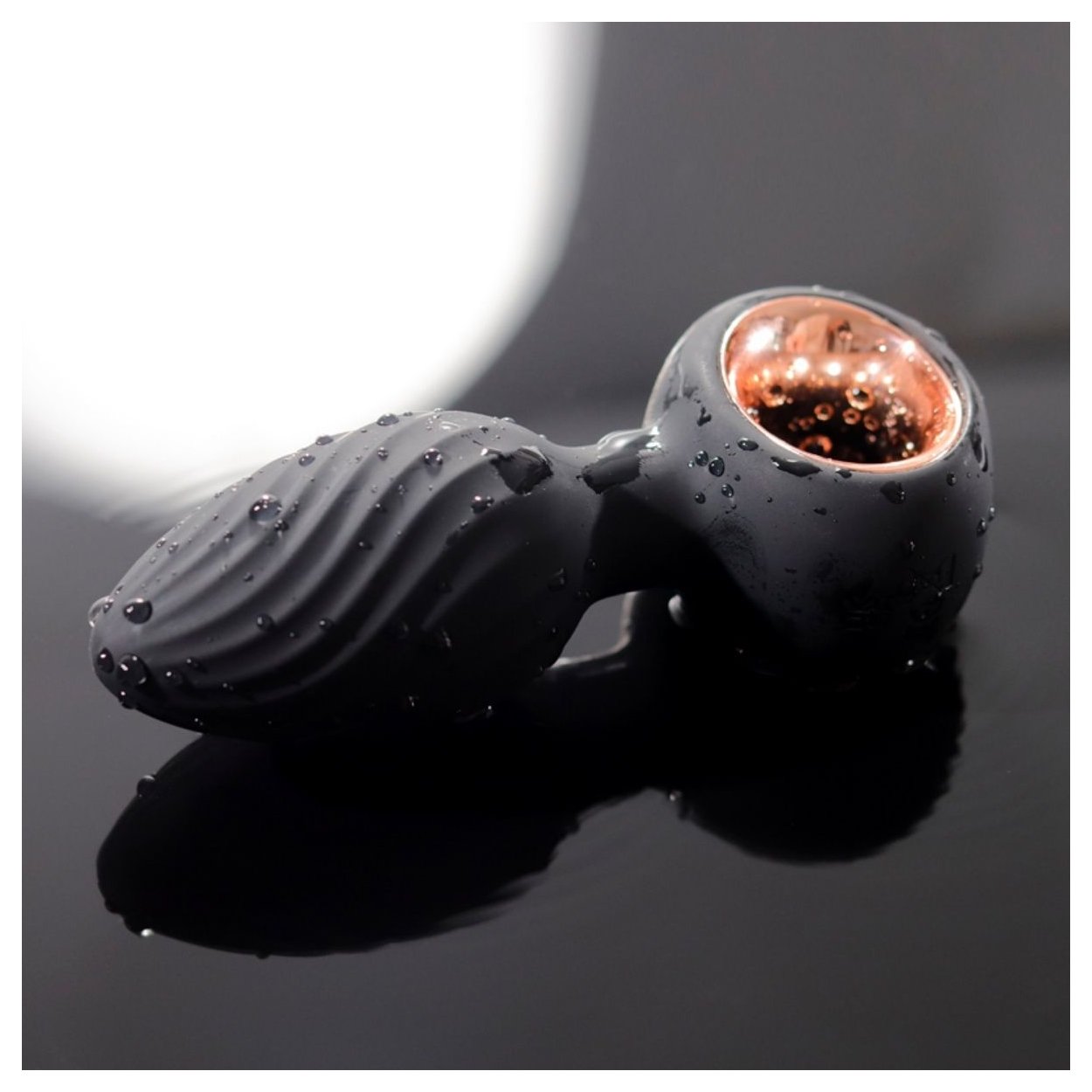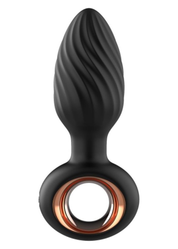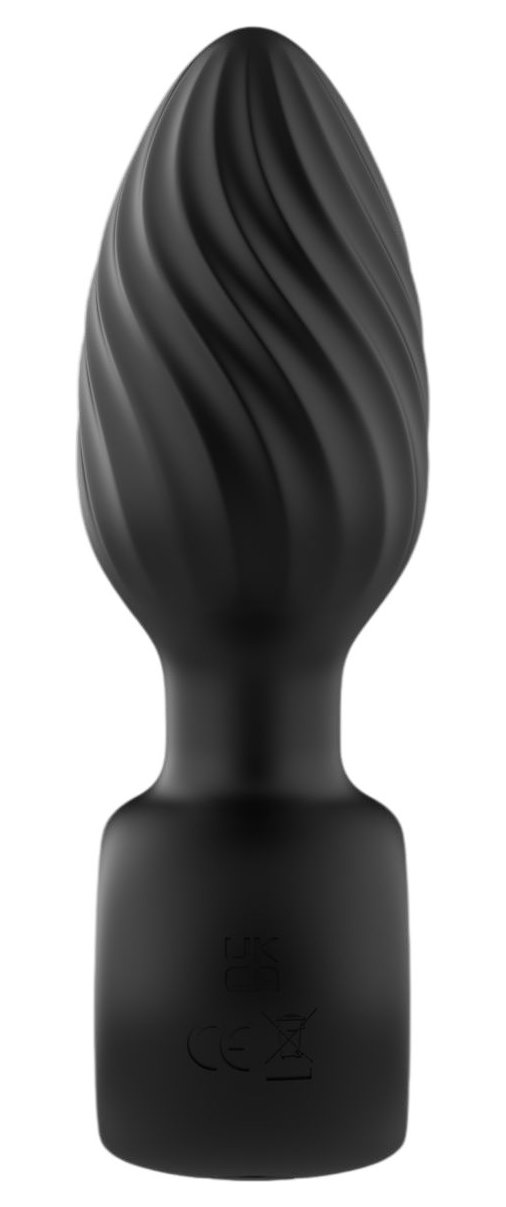 Черная анальная пробка с вибрацией, вращением и пультом ДУ