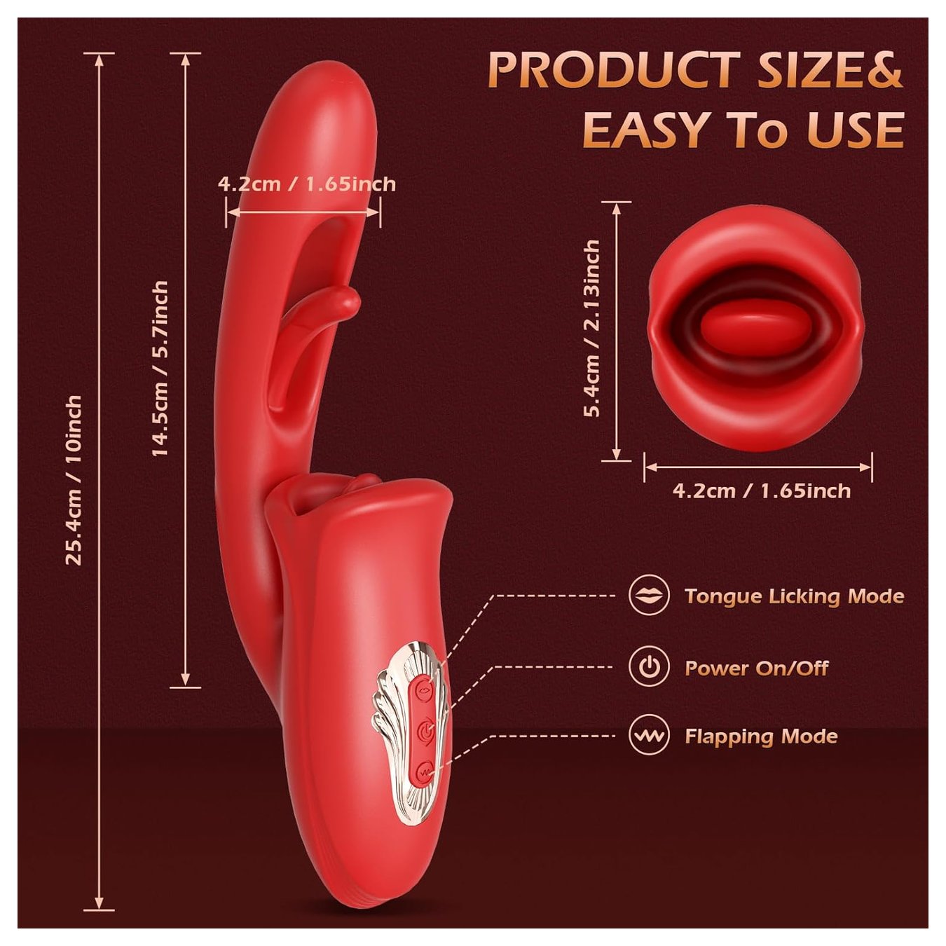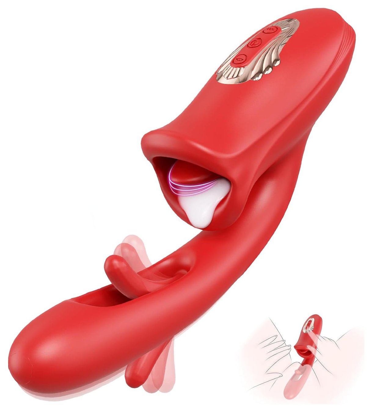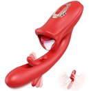 Красный вибратор с функциями фингеринга и лизания - 25,1 см