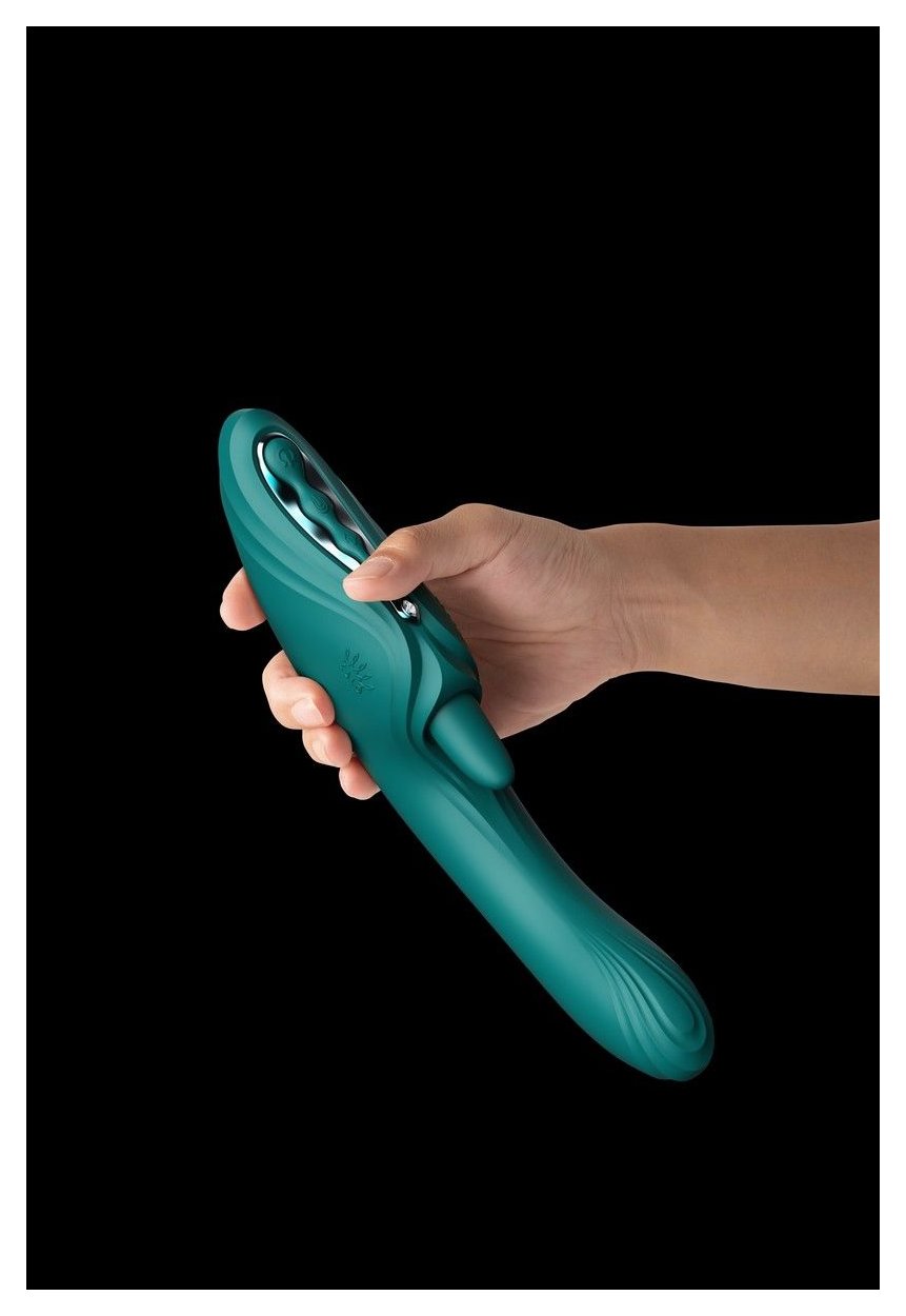 Зеленый вибростимулятор-кролик Ares с функцией нагрева длиной 24,6 см - это уникальное устройство с одновременной имитацией фингеринга и кунилингуса. Вдохновленный духом Ареса - бога войны, мужества и силы из греческой мифологии, этот вибратор создан для тех, кто ценит интенсивность, точность и неудержимую страсть. Инновационная технология G-Spot PulseWave™ сочетает ритмичные толчки с вибрациями для глубокой и точной стимуляции точки G, а функция имитации язычка обеспечивает нежное вылизывание клитора. Функция подогрева добавляет естественное тепло для более реалистичных ощущений.