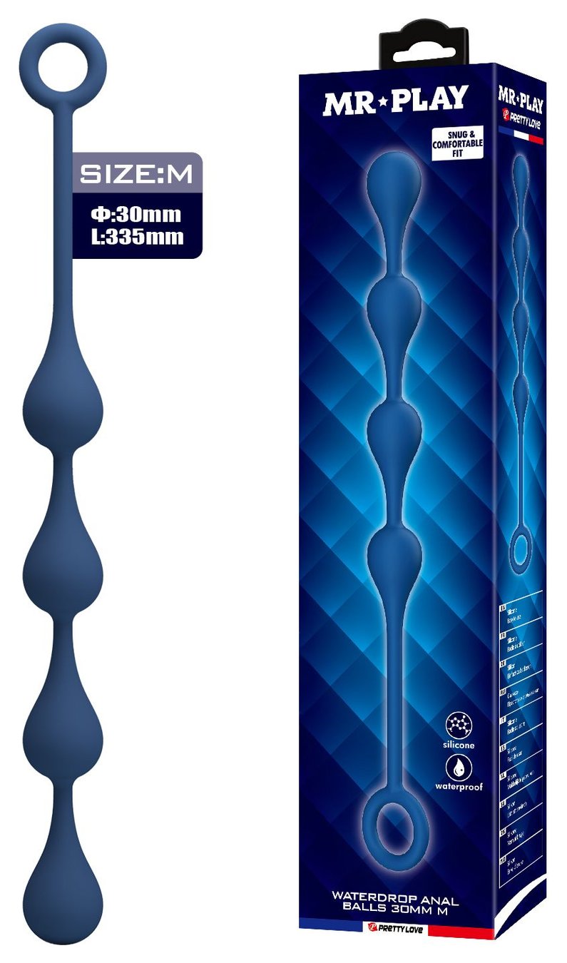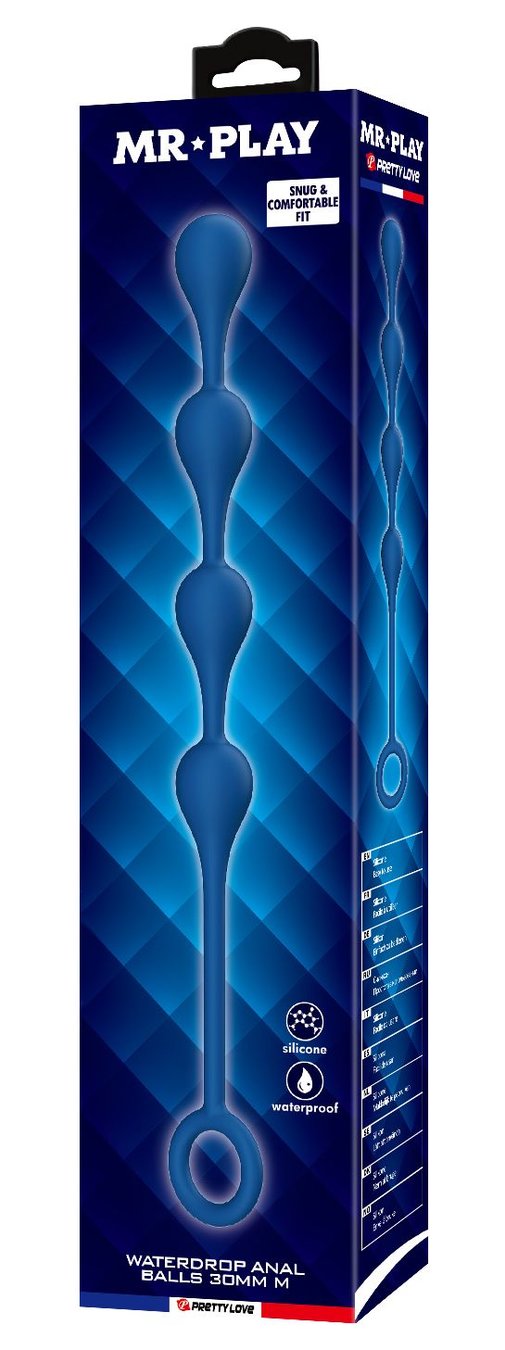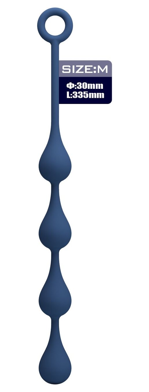 Синяя анальная ёлочка с кольцом Waterdrop Anal Balls 30 mm M - 33,5 см