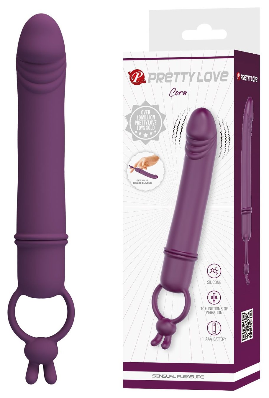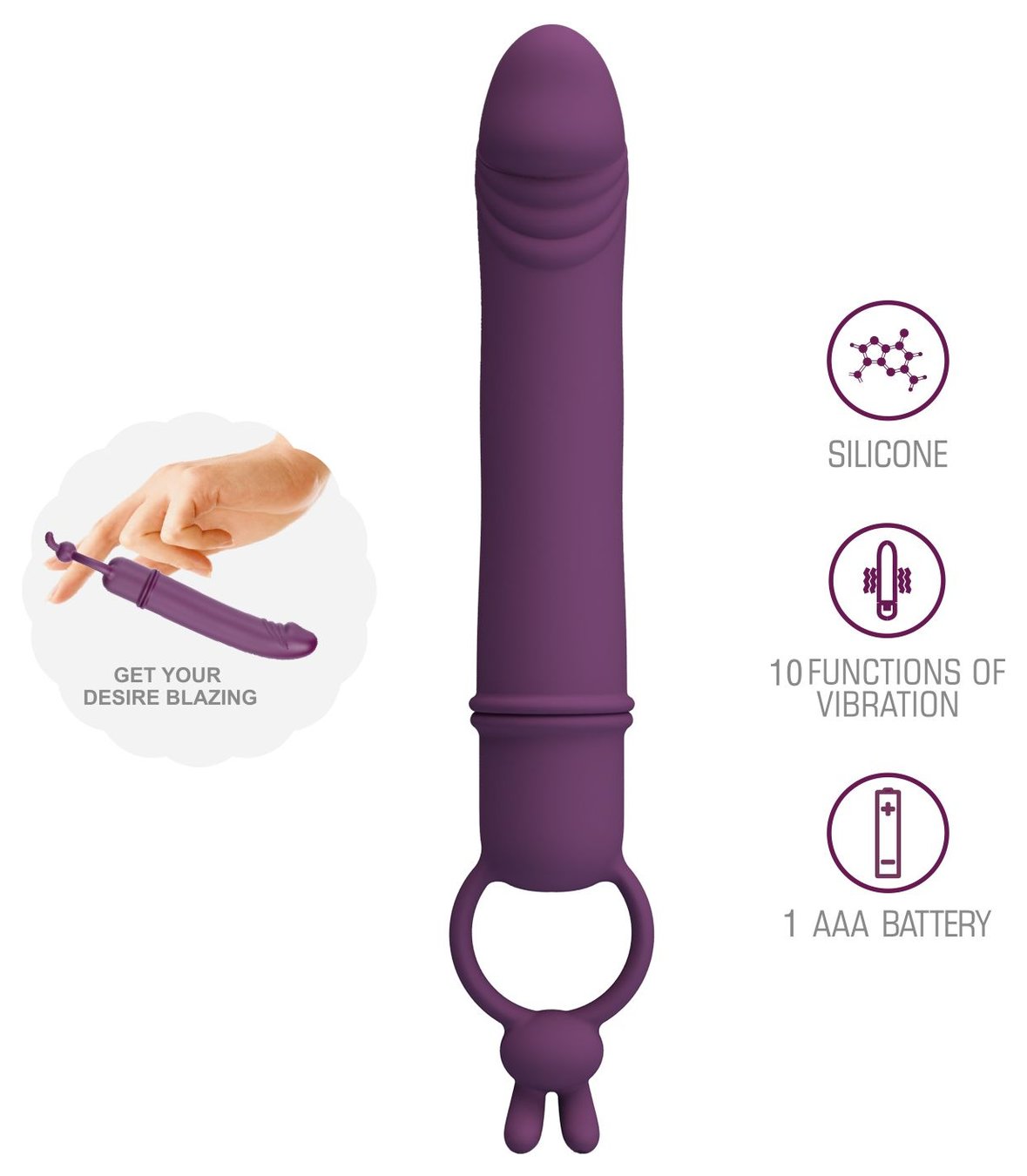 Сливовый вибратор с кольцом Cora - 15,5 см