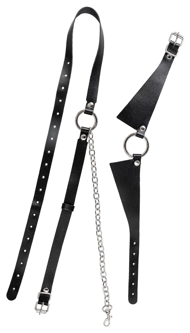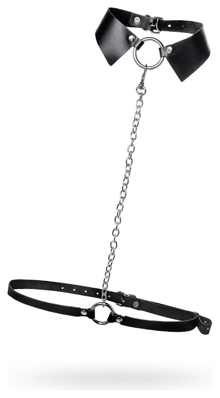 Черная портупея-чокер с поводком и карабином в виде кольца