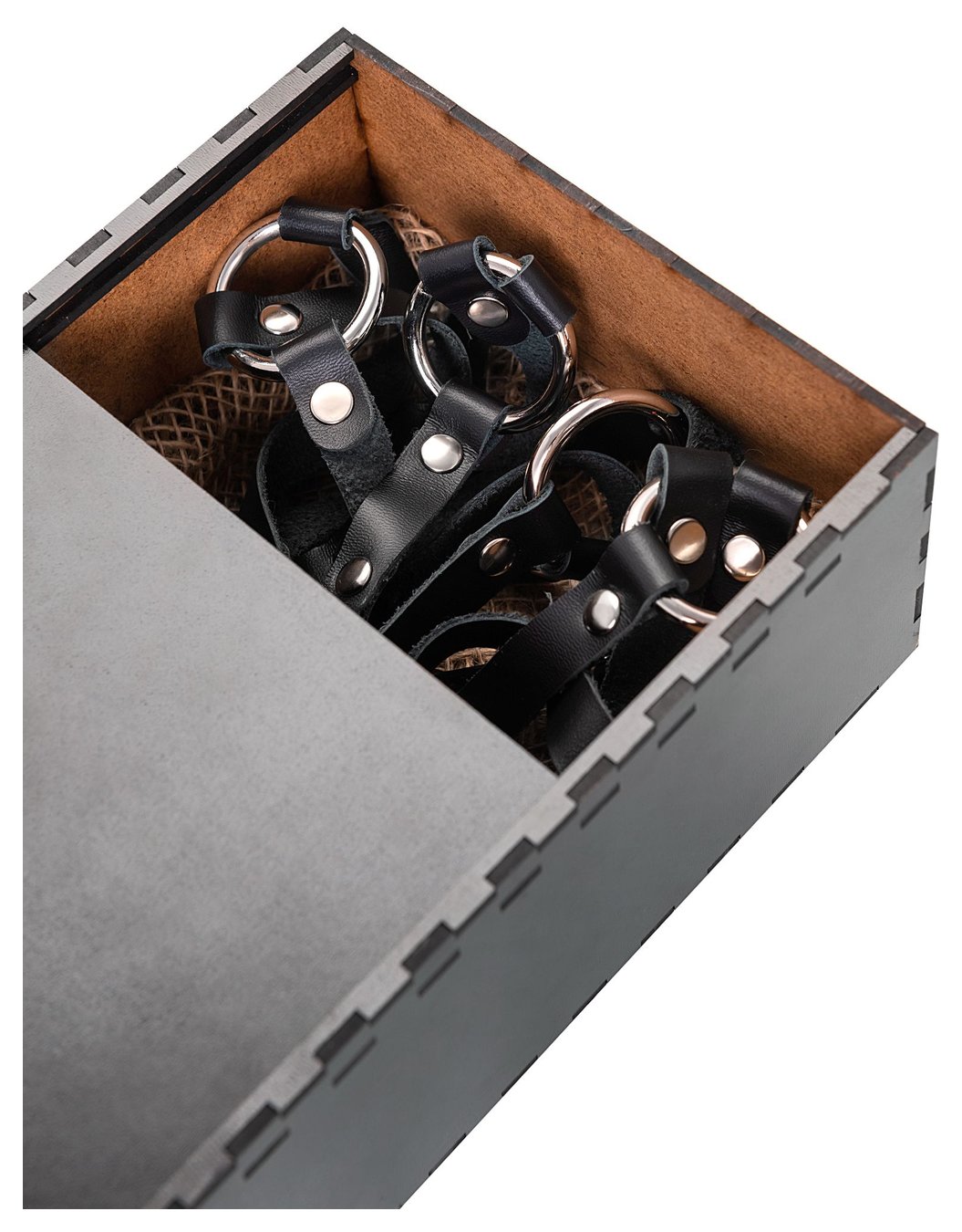 Черная кожаная портупея «Соблазн» с кольцами