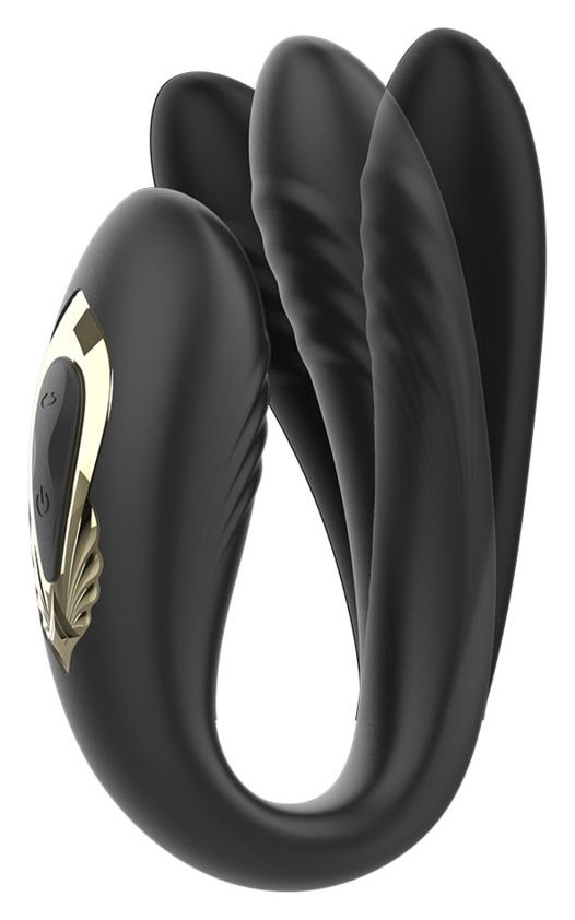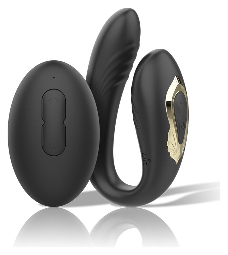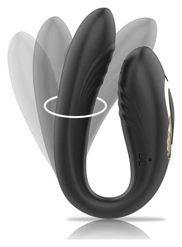 Черный вибратор для пар с ротацией и пультом ДУ