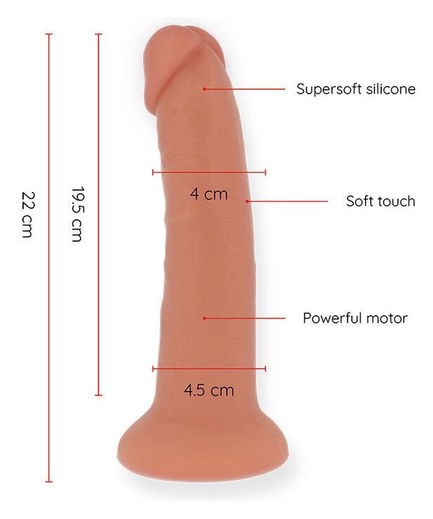 Телесный реалистичный вибратор с управлением через приложение - 22 см