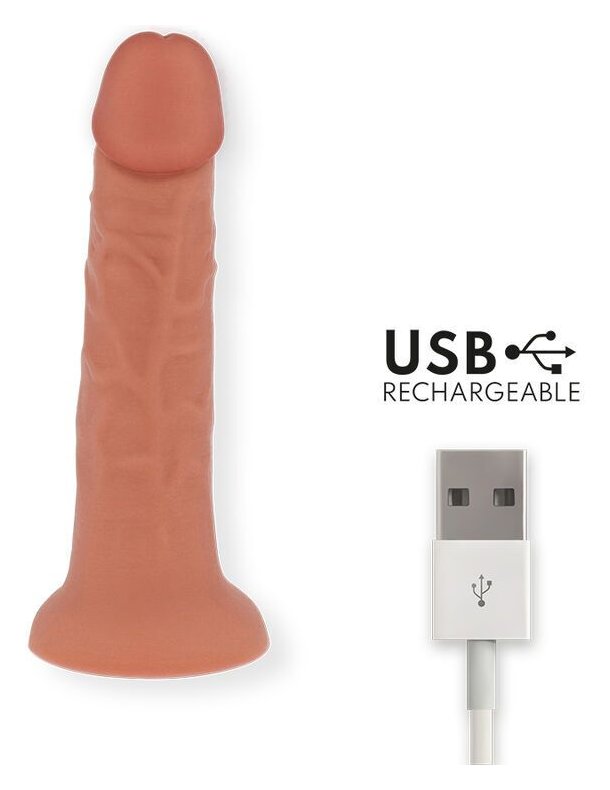 Телесный реалистичный вибратор с управлением через приложение - 20 см