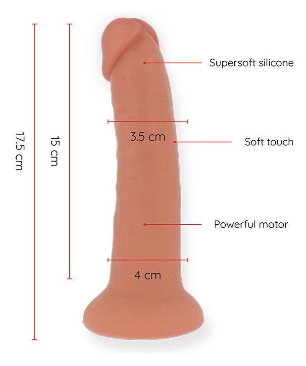 Телесный реалистичный вибратор с управлением через приложение - 17,5 см