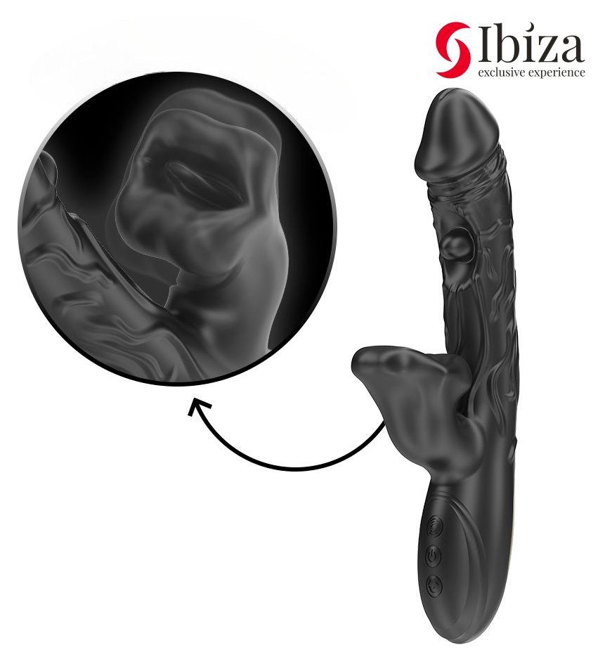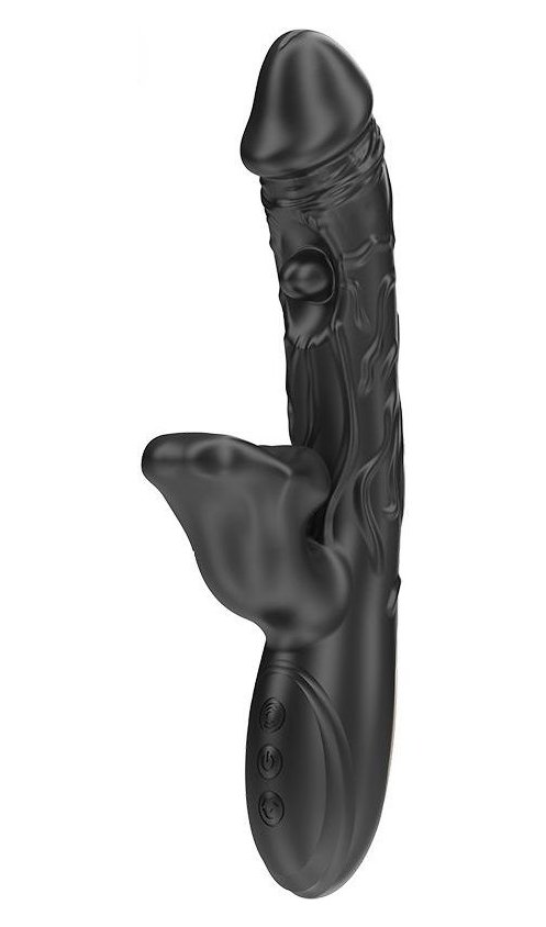 Черный вибратор с режимами колебаний и посасывания - 23,5 см