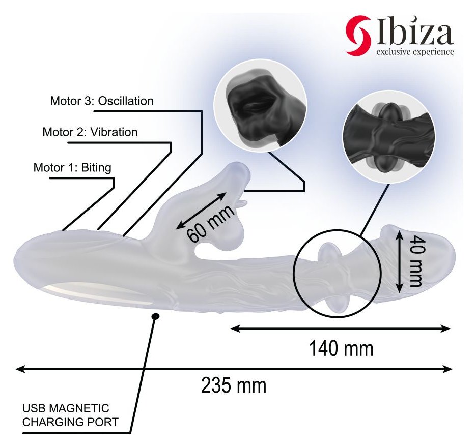 В ассортименте вибростимуляторы hi-tech есть в наличии товары для женщин поставщика Ibiza. Материал, которому отдают предпочтение наши покупатели, подбирая себе один из этих товаров - силикон. А предпочитаемые размеры: диаметр 4 см, длина 23.5 см.