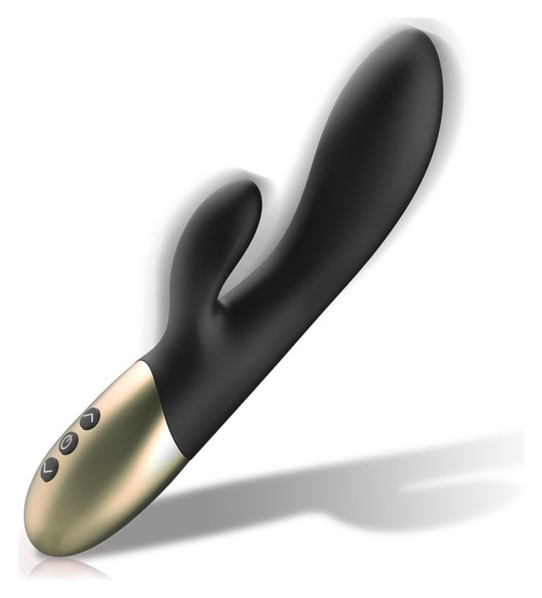 Черный перезаряжаемый вибратор-кролик - 22 см